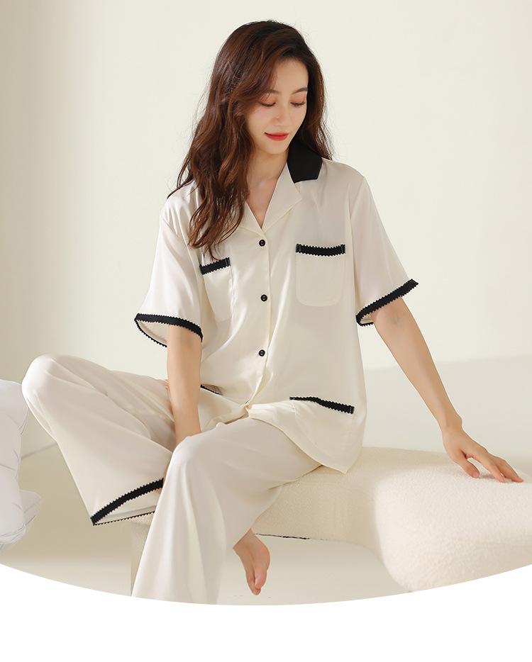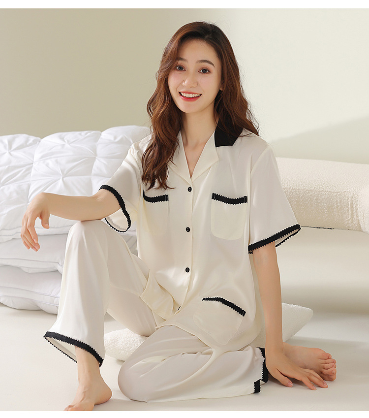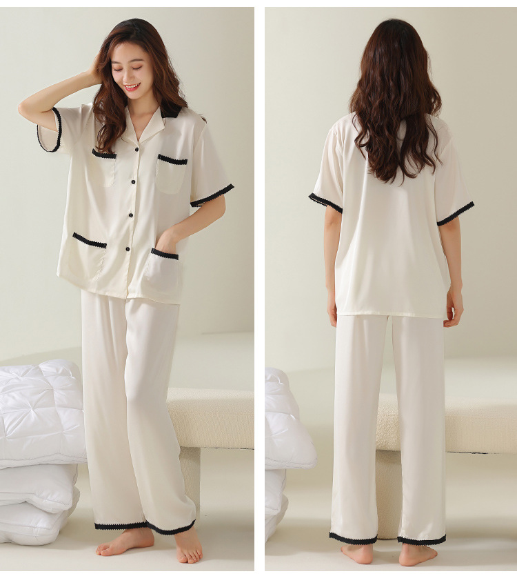 물롱 귀족 가족 아이스 실크 잠옷 여름 얇은 반팔 바지 새로운 여름 실크 같은 가정복 투피스 세트