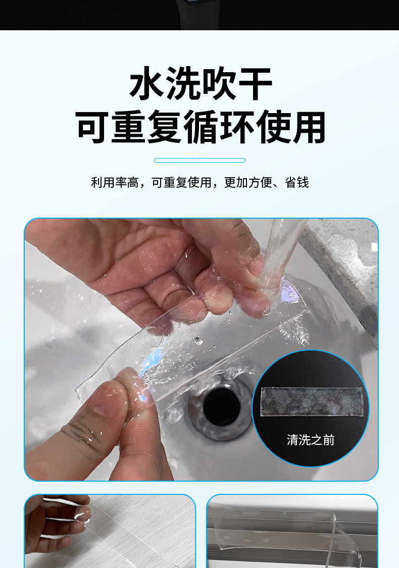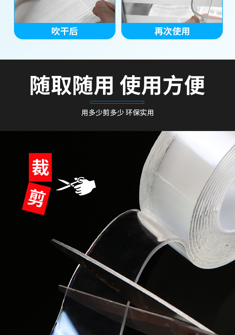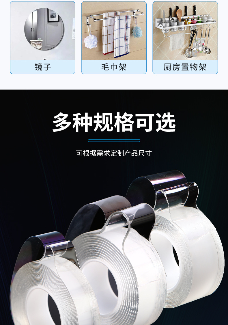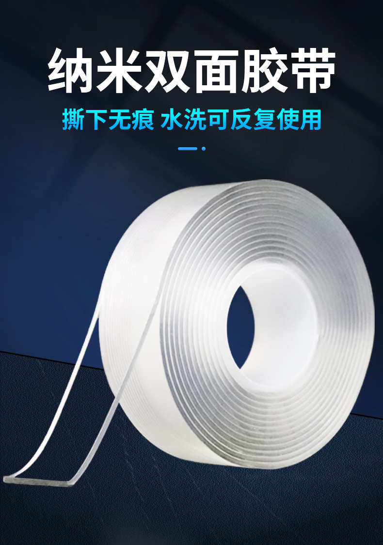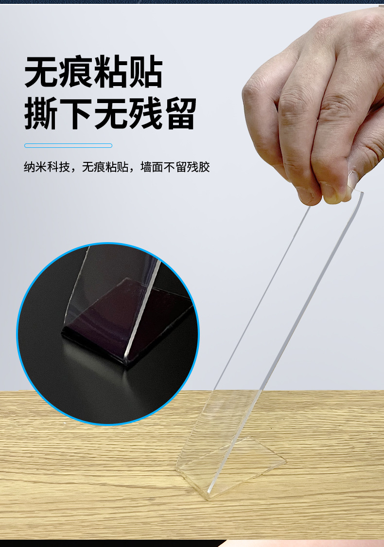 나노 접착제 아크릴 테이프 투명 무흔적 접착제 강력 접착 후크 나노 세척 가능 강력 고점도 양면 테이프