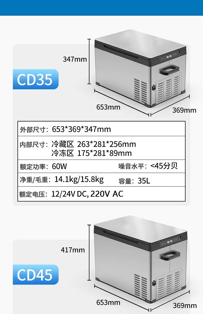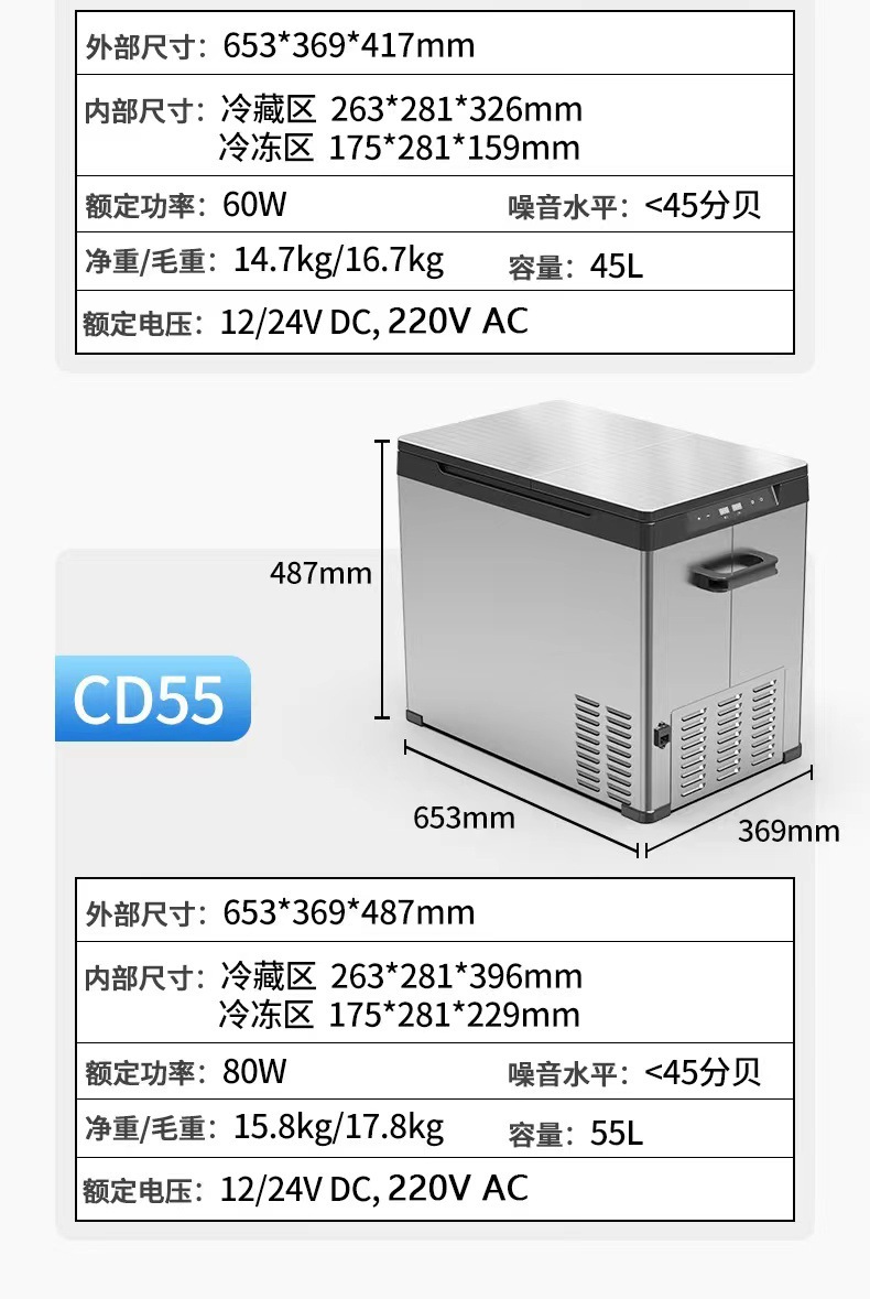 컴프레서 자동차 냉장고 12V/24V/110V/220V 냉장 이중 온도 단일 제어