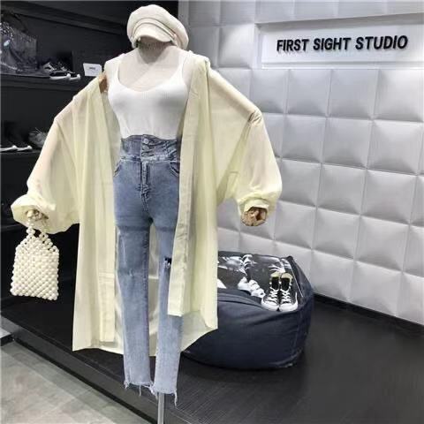 시폰 목도리 태양 보호 카디건 2024 봄, 여름 한국 스타일 느슨한 태양 보호 의류 여성 중간 길이 패션 통기성 얇은 재킷스토어 가기