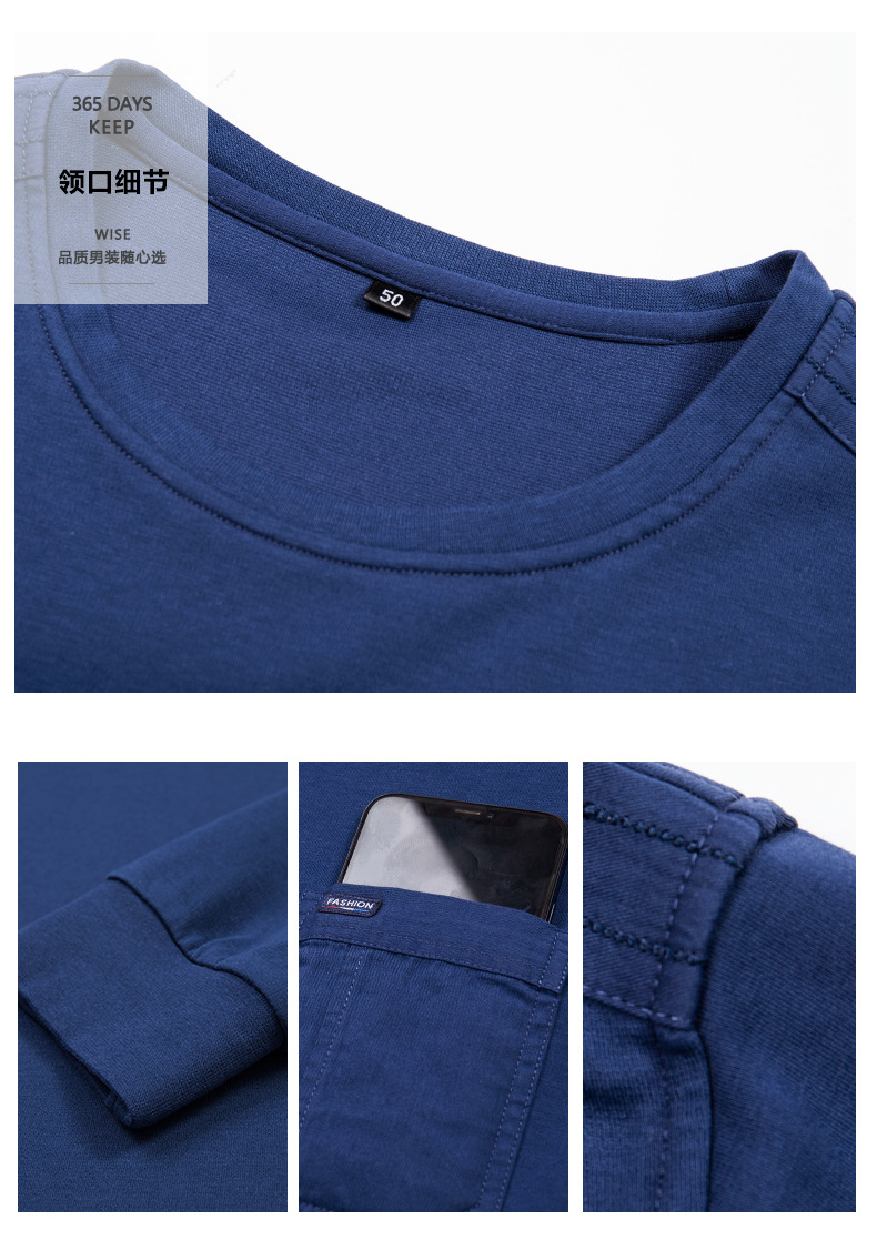 中年男爸爸长袖T恤男士春装上衣圆领带兜口袋纯色棉打底体桖衫男t