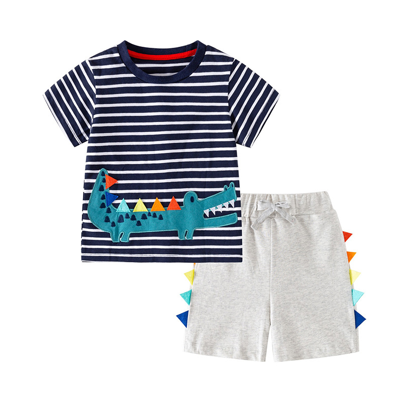 Littlebuddy2023 아동복 여름 새면 스트라이프 반팔 티셔츠 악어 반바지 어린이 세트 2-7