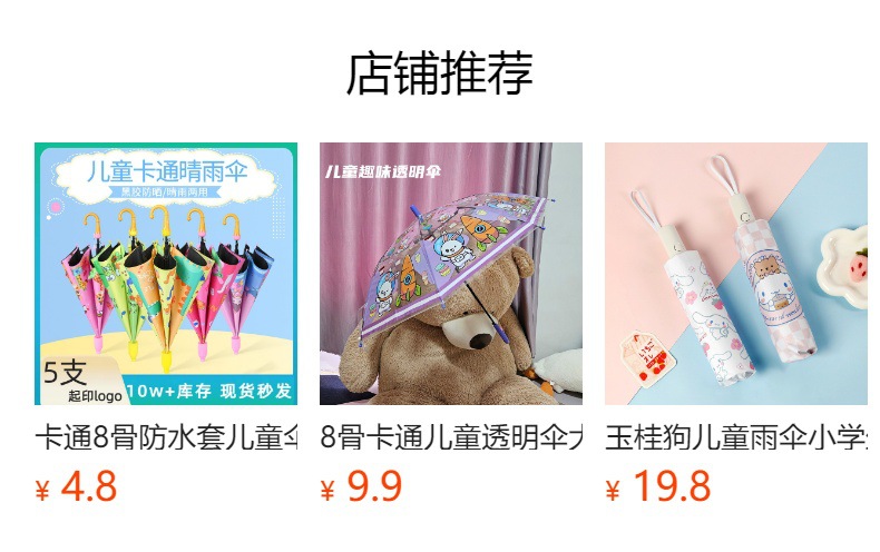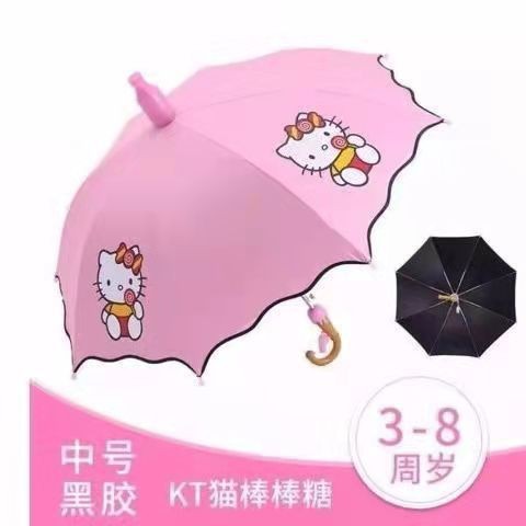 8 뼈 만화 방수 세트 어린이 우산 초등 학생 곡선 핸들 우산 블랙 접착제 자외선 차단제 유치원 긴 손잡이 우산 도매