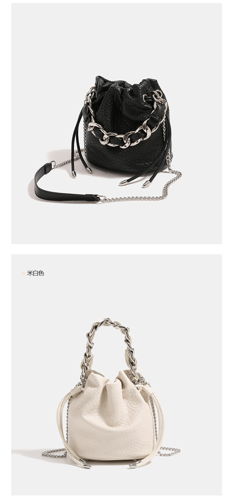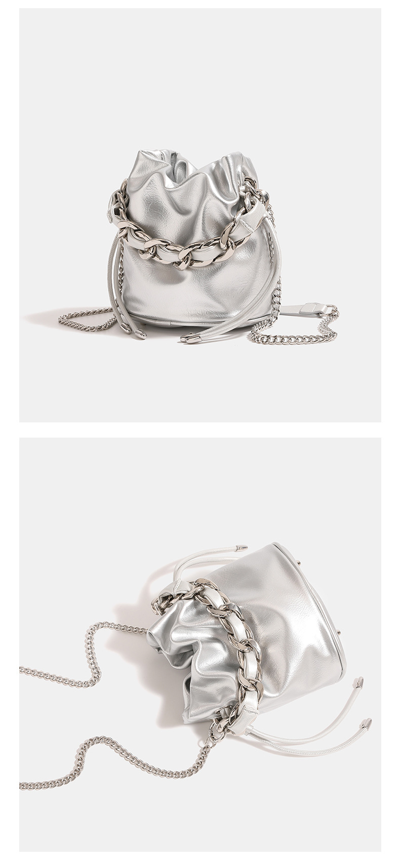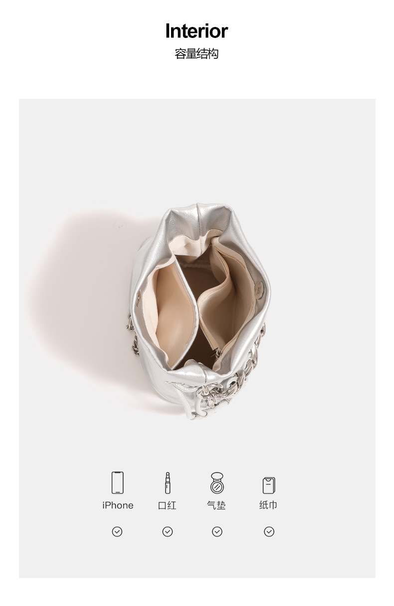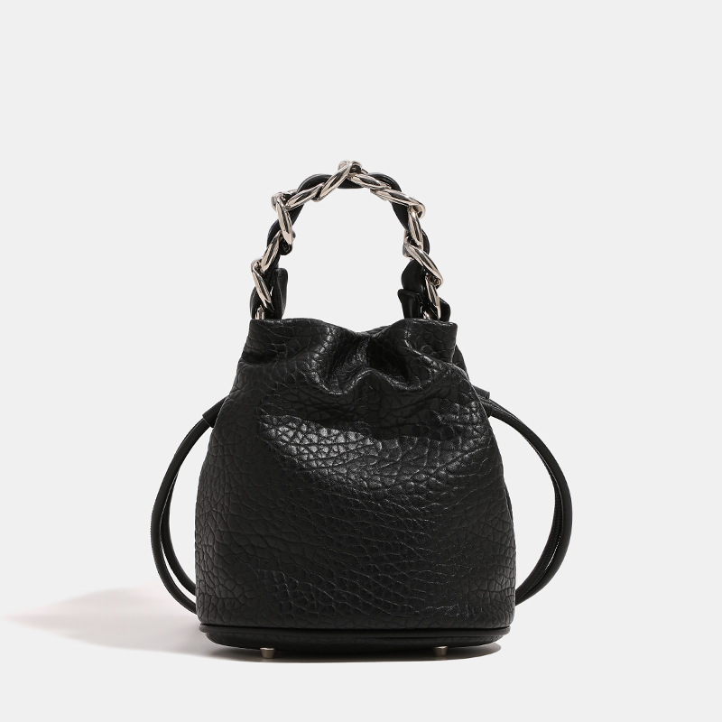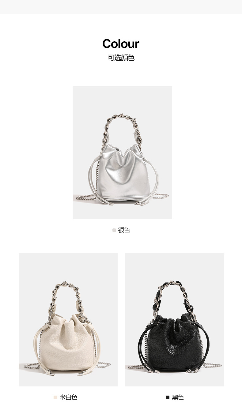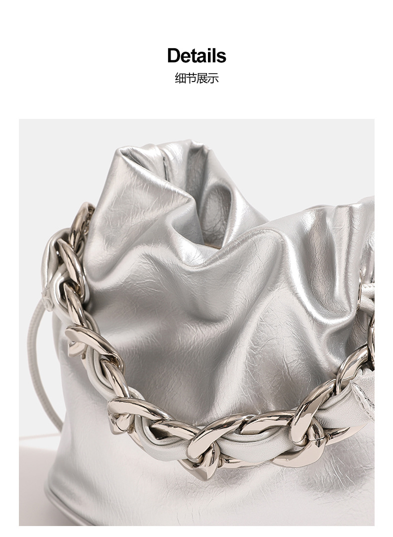 실버 방황하는 짠 체인 버킷 백 2024 새로운 여성용 틈새 고급 휴대용 크로스 바디 백 숄더 백스토어 가기