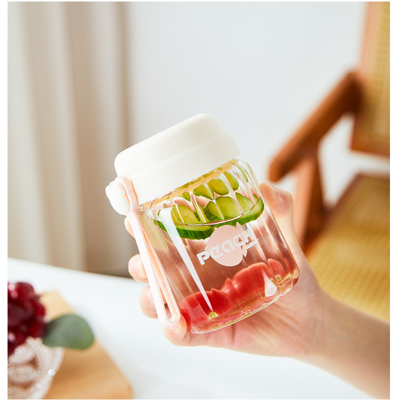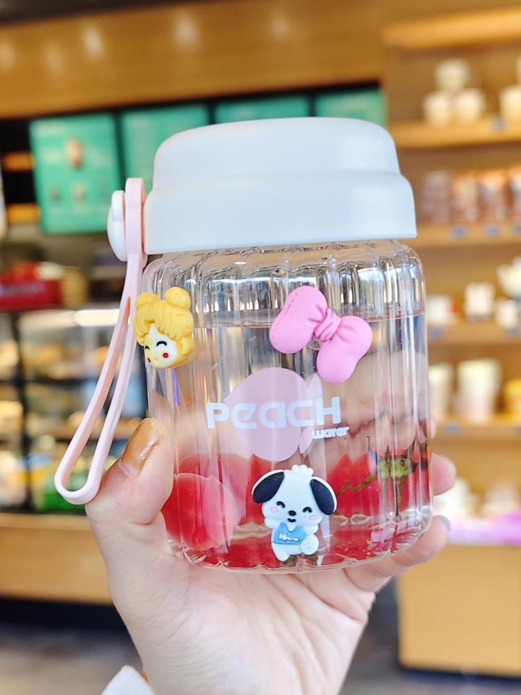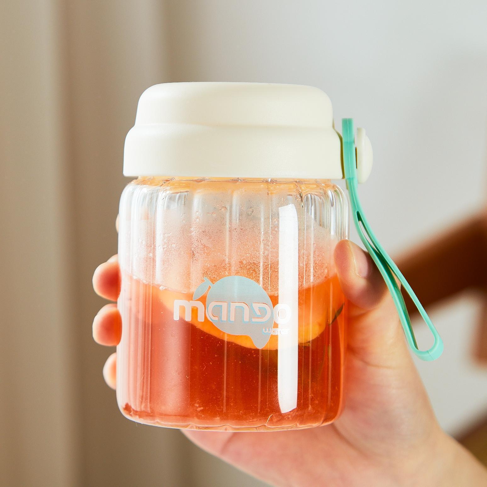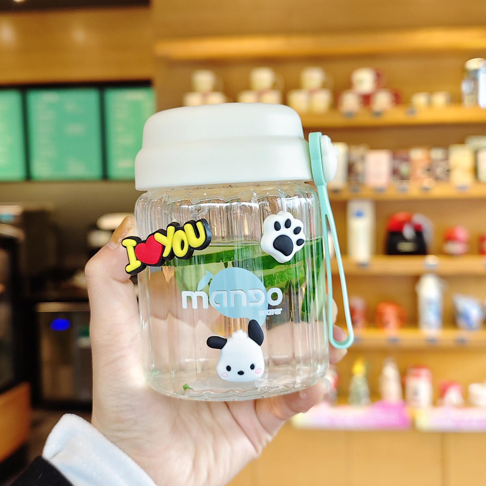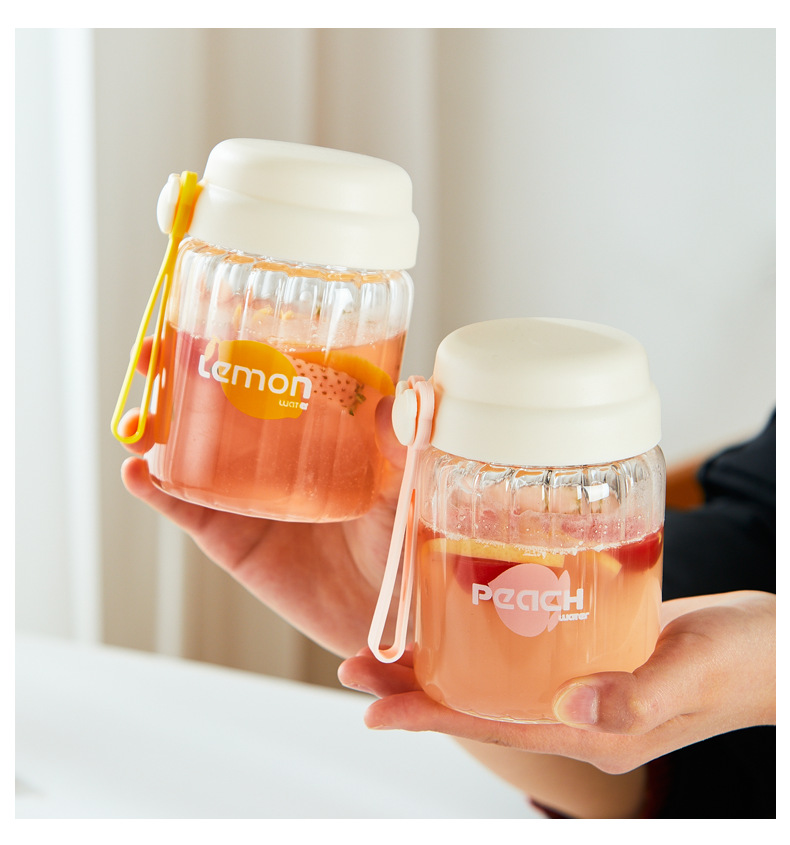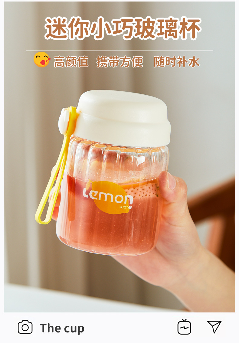 컬러 가치가 높은 여아용 고온 내성 유리 소형 휴대용 컵 학생용 간단 핸디 컵 귀여운 인터넷 유명 워터 컵