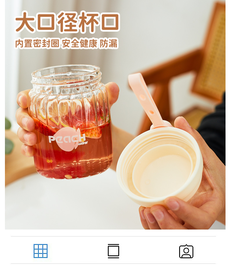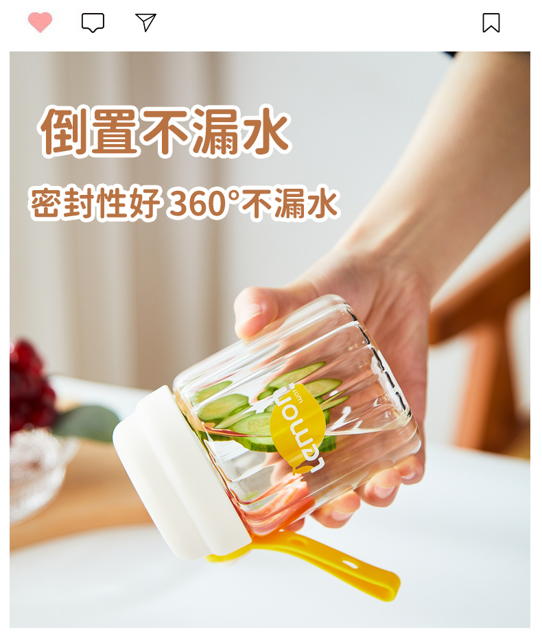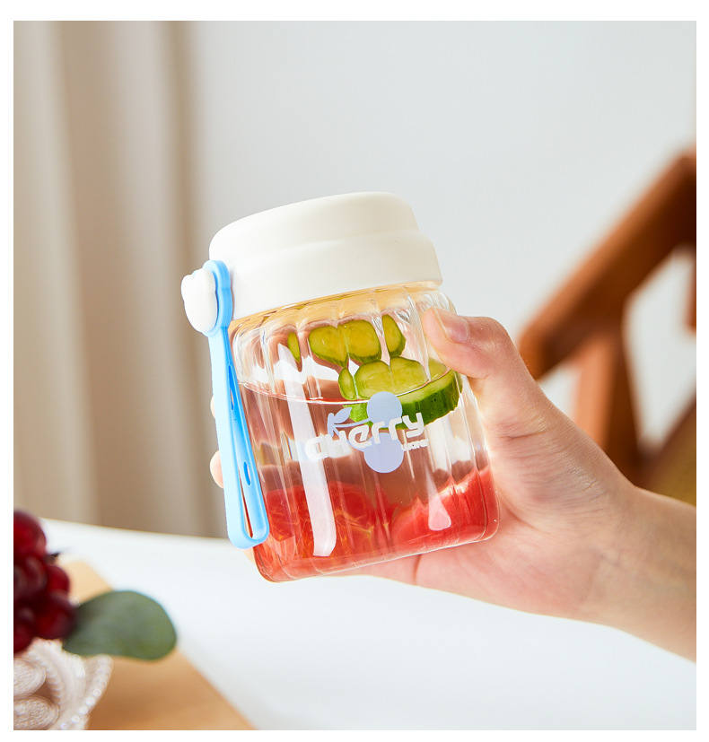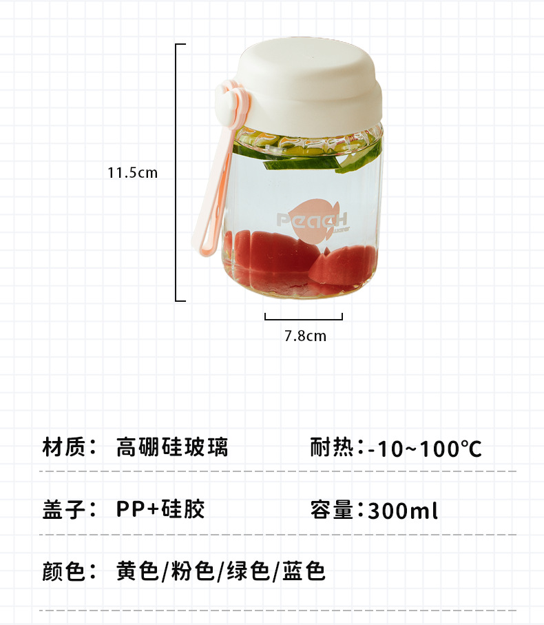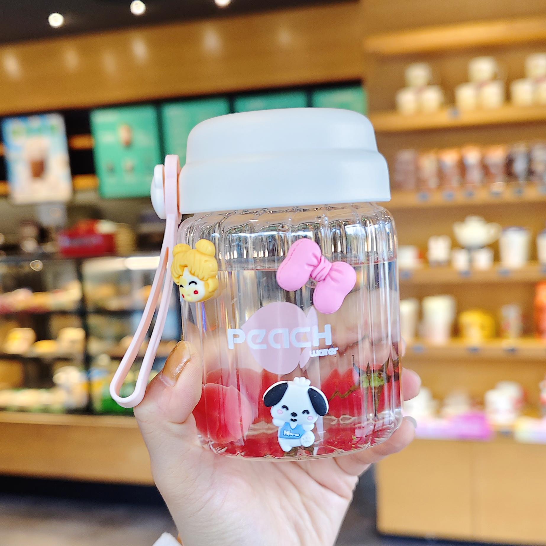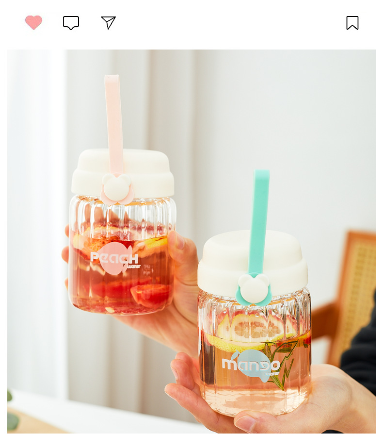 컬러 가치가 높은 여아용 고온 내성 유리 소형 휴대용 컵 학생용 간단 핸디 컵 귀여운 인터넷 유명 워터 컵