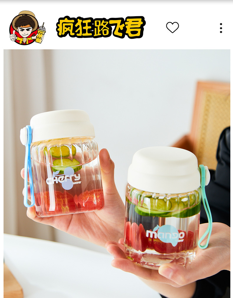 컬러 가치가 높은 여아용 고온 내성 유리 소형 휴대용 컵 학생용 간단 핸디 컵 귀여운 인터넷 유명 워터 컵스토어 가기