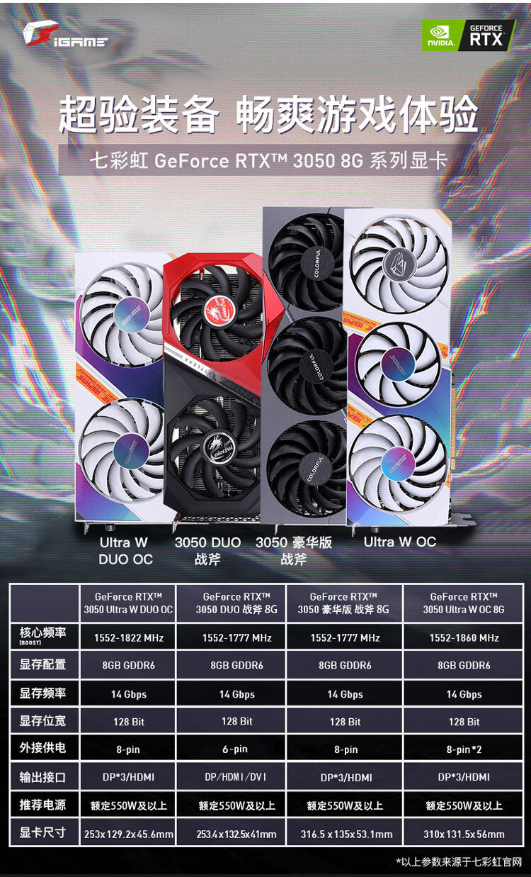무지개 RTX3050 울트라 W OC DUO 8G 더블 팬 게임 비디오 경쟁 독립 디스플레이