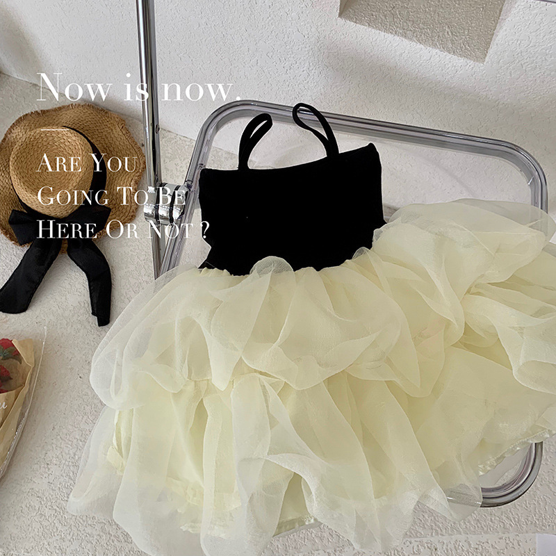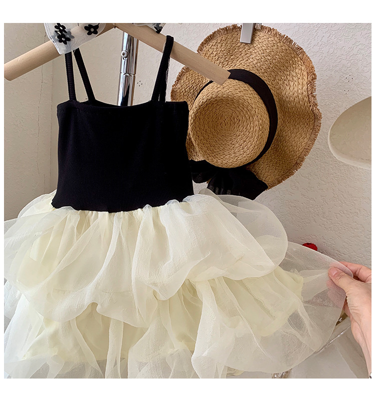 소녀의 작은 검은 치마 여름 한국 스타일 작은 소녀의 슬립 스커트 아기 소녀의 메쉬 퍼프 스커트 어린이 민소매 공주 스커트스토어 가기