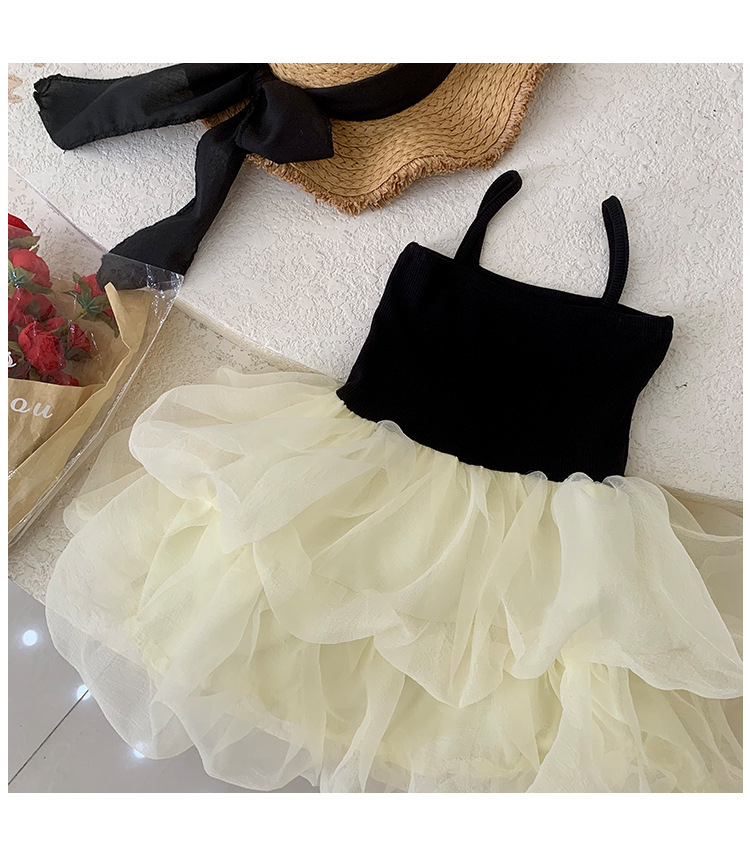 소녀의 작은 검은 치마 여름 한국 스타일 작은 소녀의 슬립 스커트 아기 소녀의 메쉬 퍼프 스커트 어린이 민소매 공주 스커트