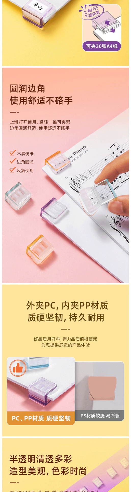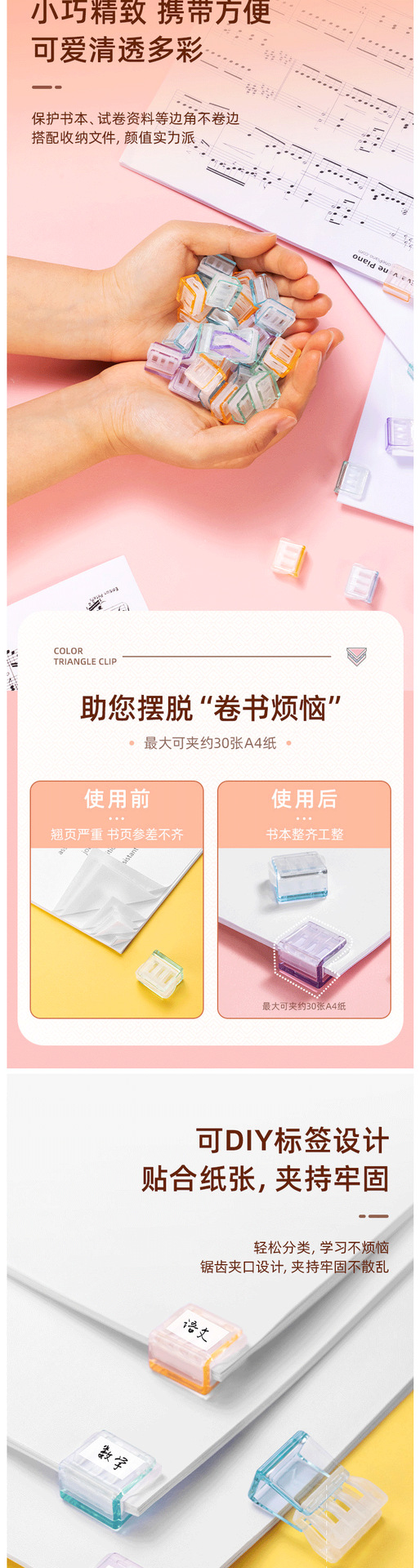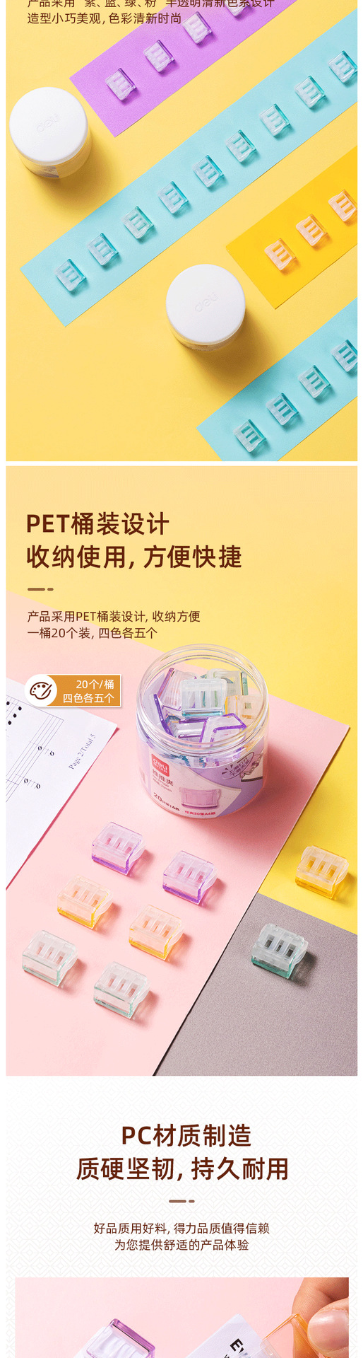 델리 푸시 클립 푸셔 색상 투명 클립 테스트 종이 보관 클립 학생 문구 클립 원활한 바인딩 클립