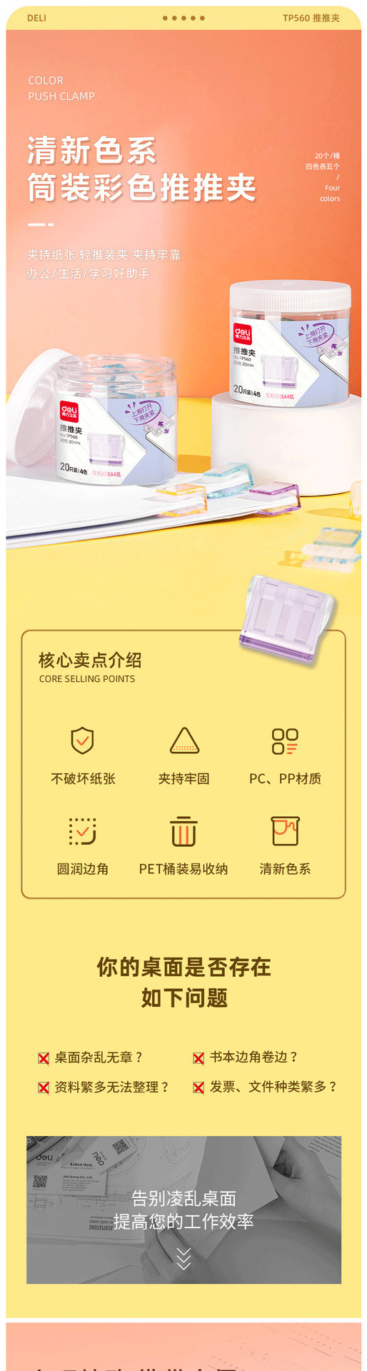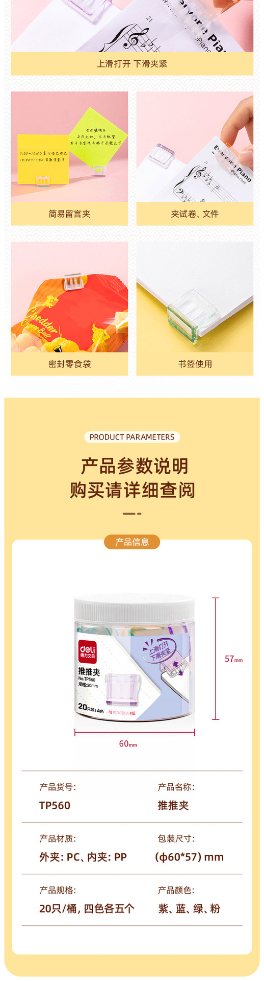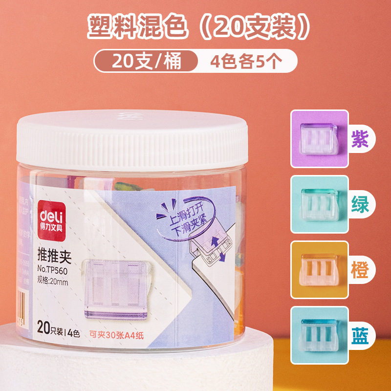 델리 푸시 클립 푸셔 색상 투명 클립 테스트 종이 보관 클립 학생 문구 클립 원활한 바인딩 클립스토어 가기