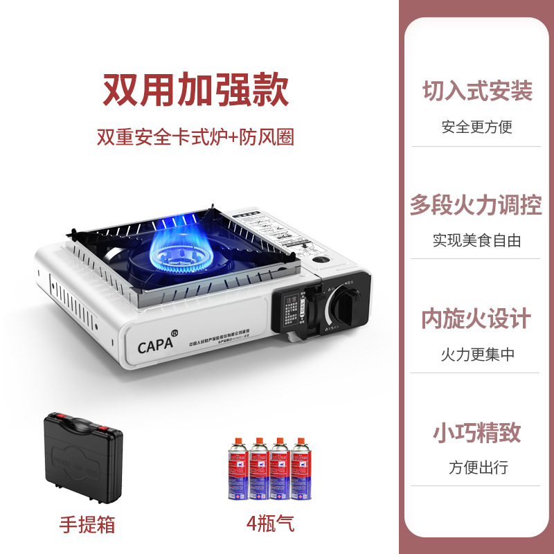 • 이중 안전장치 (흰색 이중 사용 + 방풍 링 + 여행 가방 + 4 가스)