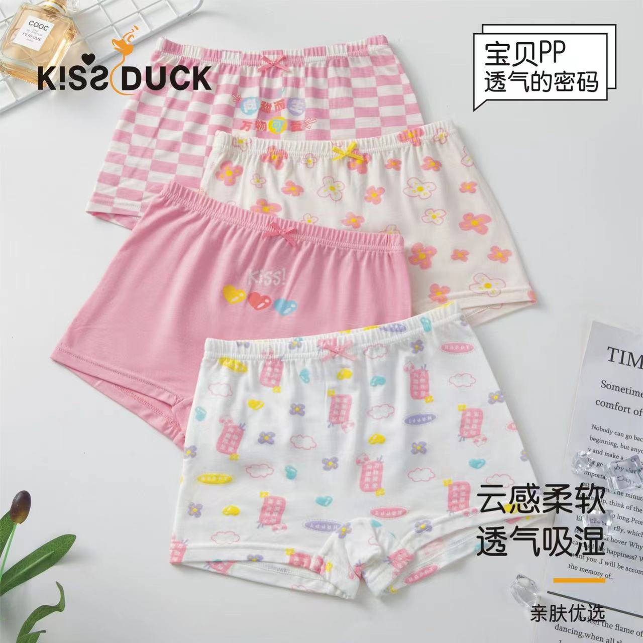 작은 노란 오리 여아 속옷 모달 4 코너 반바지 얇은 어린 소녀 클래스 엉덩이가없는 복서 반바지