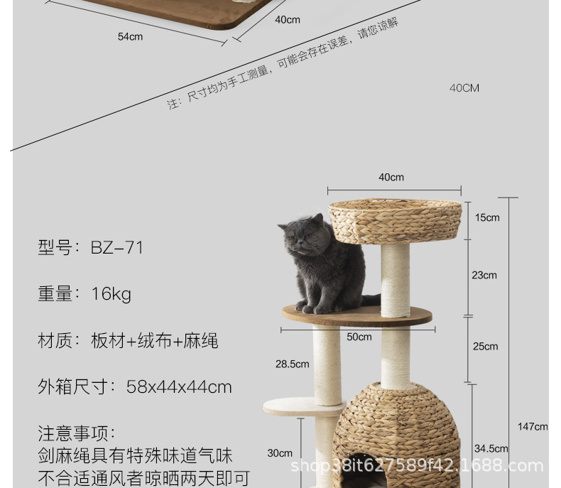 공장 고양이 등반 랙 고양이 나무 사이잘룩 고양이 등반 랙 점프 플랫폼 사계절 유니버설 cattail 직조 고양이 둥지스토어 가기