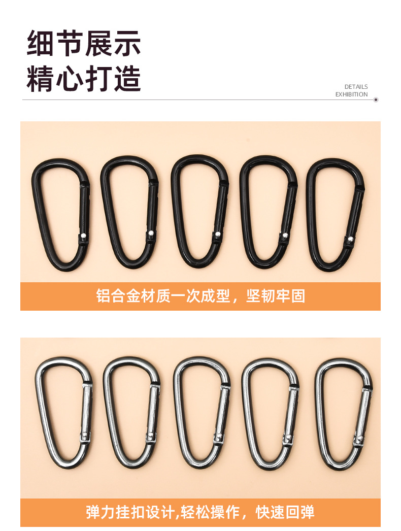 공장 공급 No. 6 D 유형 두꺼운 웨이 매트 전기 영동 모든 블랙 알루미늄 합금 카라비너 D 자형 후크스토어 가기