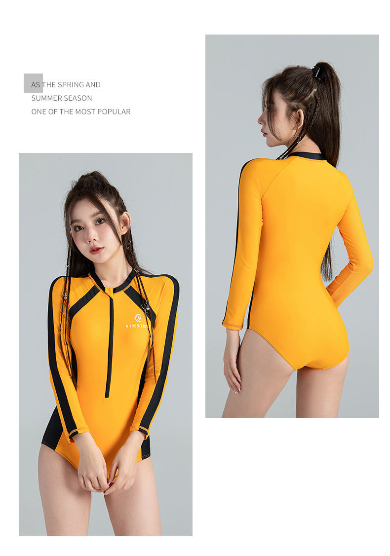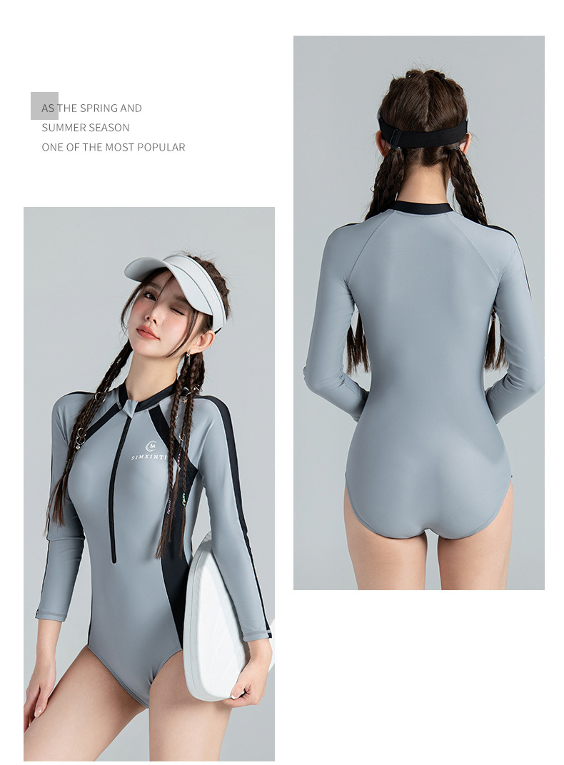 2023 뉴 그레이 원피스 레트로 수영복 여성용 작은 가슴 푸시 업 배꼽 덮음 슬리밍 긴팔 자외선 차단제 온천 수영복