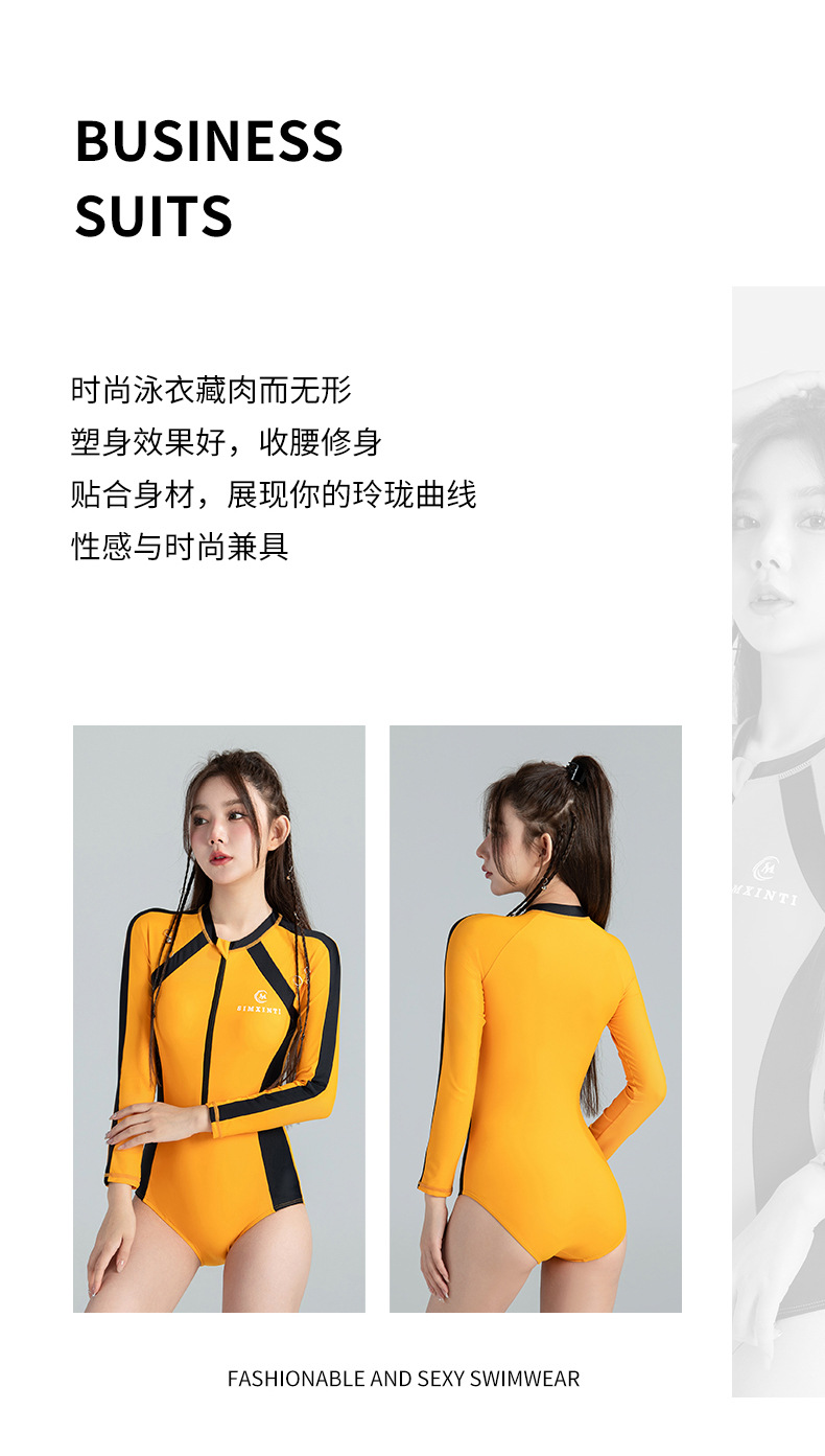 2023 뉴 그레이 원피스 레트로 수영복 여성용 작은 가슴 푸시 업 배꼽 덮음 슬리밍 긴팔 자외선 차단제 온천 수영복스토어 가기