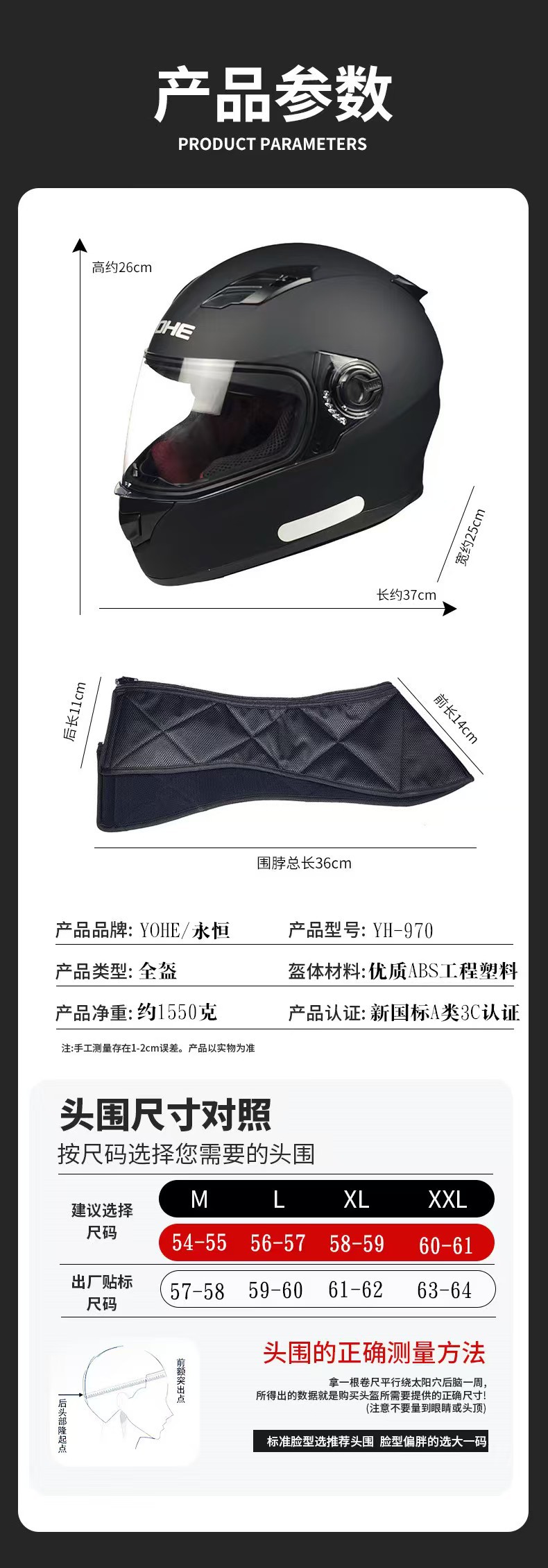 이터널 970 헬멧 3C 인증 오토바이 겨울 방한 따뜻한 김서림 방지 풀 헬멧 (스카프 포함) 남녀 안전 헬멧