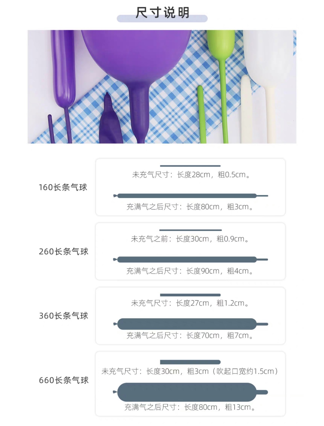 260 스트립 두께 1.8g 풍선 생일 파티 장식 매직 스트립 풍선 모양 짠 혼합 도매