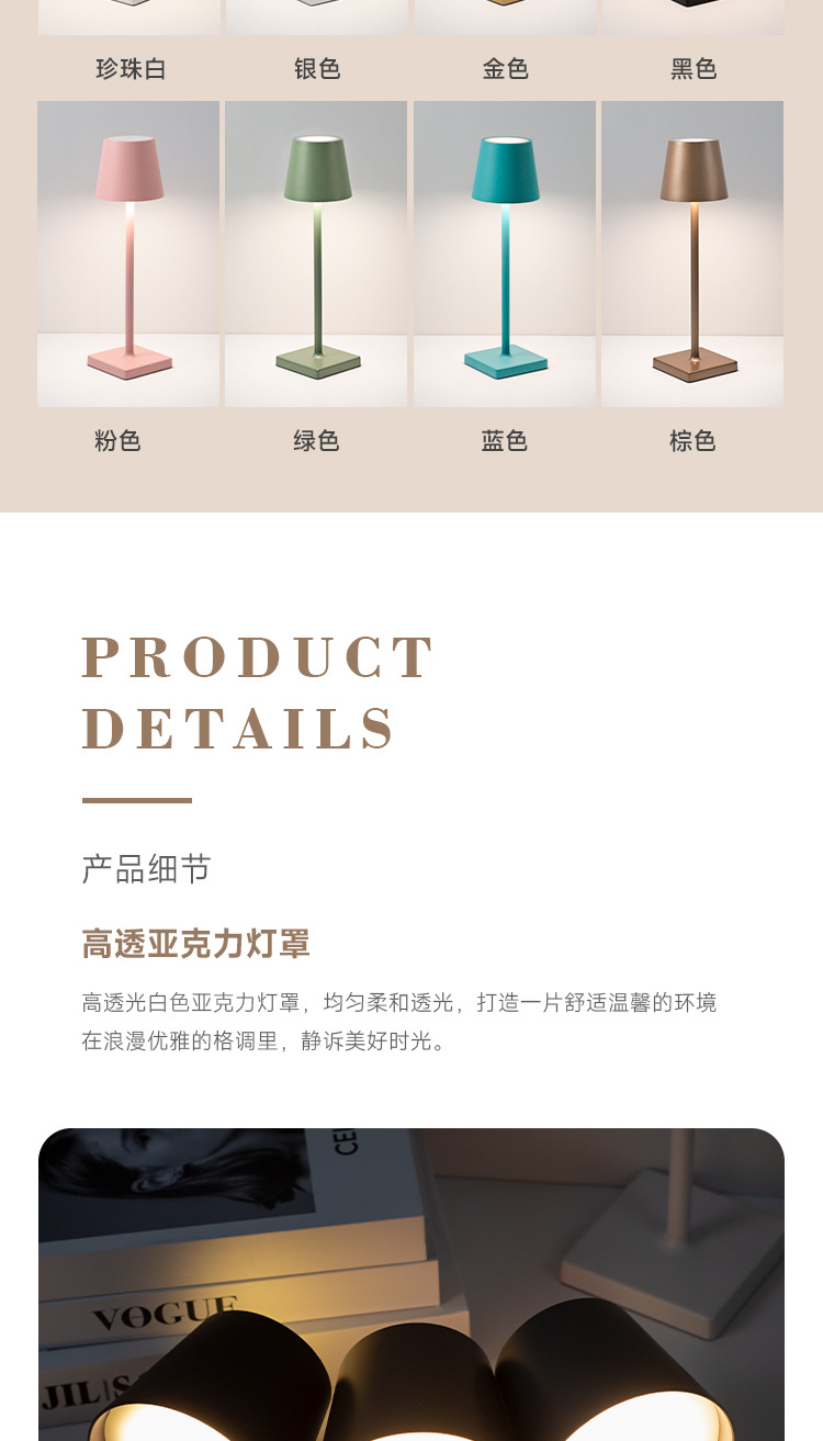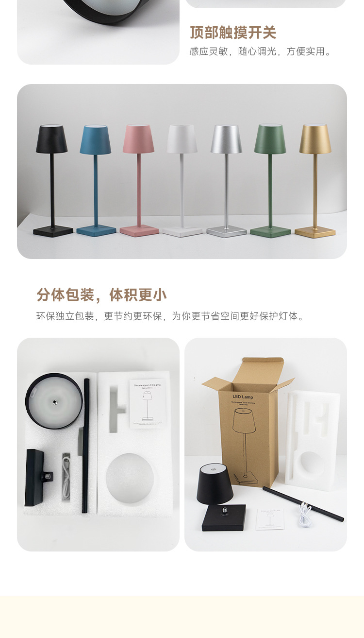 알루미늄 LED 충전식 테이블 램프 USB 모던 심플 터치 다이닝 바 KTV 야간 조명 바 테이블 램프 분위기등 크로스 보더스토어 가기