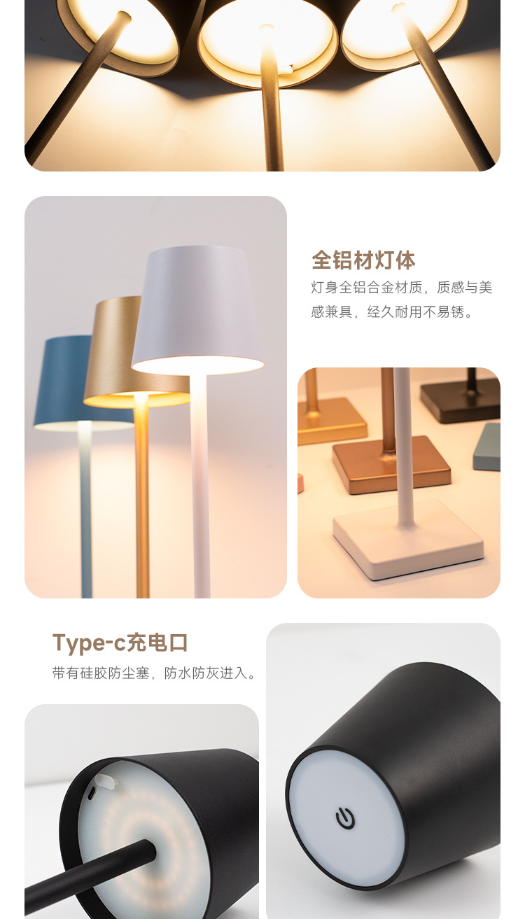 알루미늄 LED 충전식 테이블 램프 USB 모던 심플 터치 다이닝 바 KTV 야간 조명 바 테이블 램프 분위기등 크로스 보더