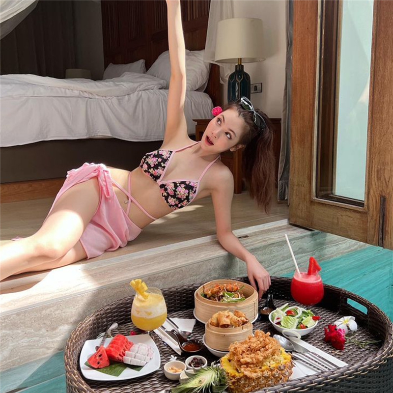 새로운 수영복 여성용 섹시 비키니 쓰리피스 세트 2023 새로운 패션 슬림 해변 온천 수영복스토어 가기