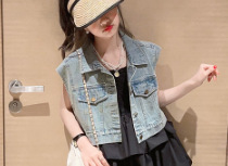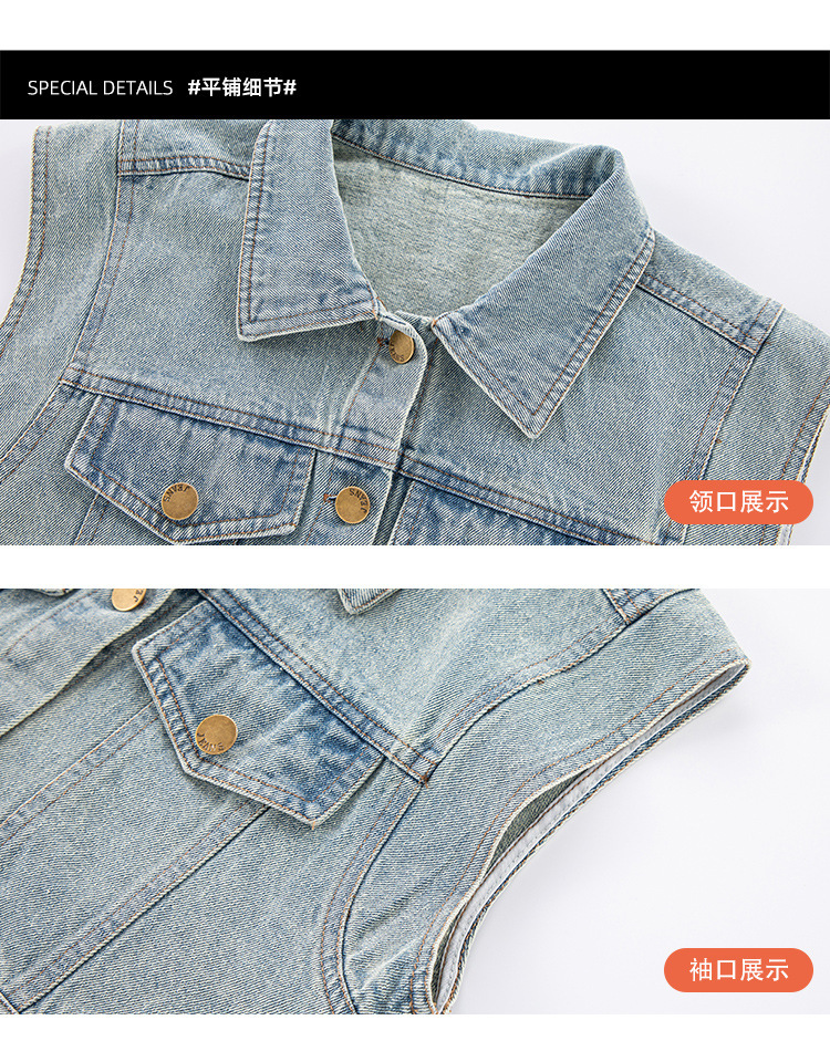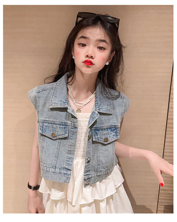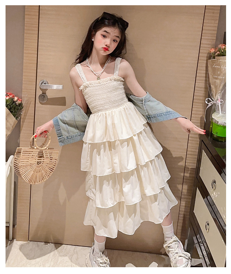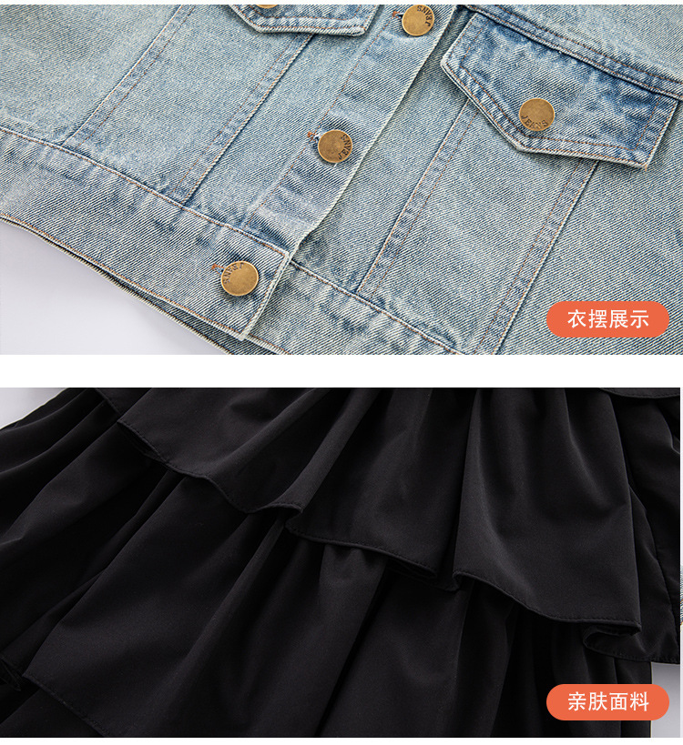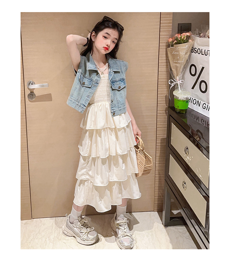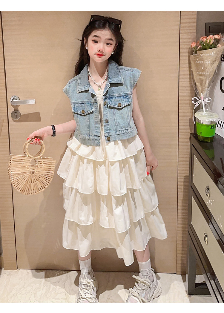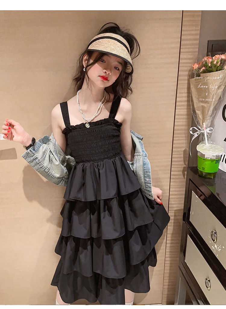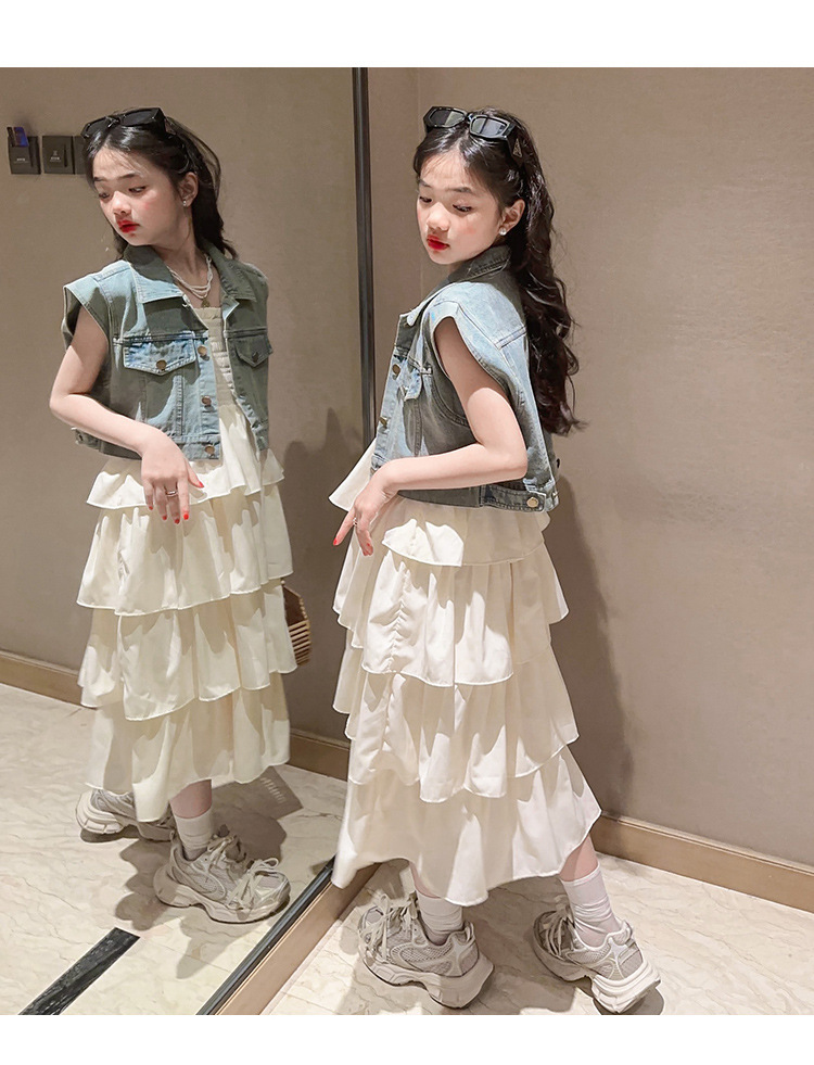 여아 데님 조끼 슬링 스커트 투피스 세트 2023 여름 새 케이크 스커트 프랑스 고급 블랙 롱 스커트스토어 가기