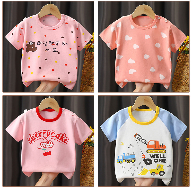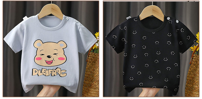 어린이 티셔츠 면 여름 새로운 소년 옷 아기 만화 소녀 반팔 한국 최고 아동 의류 도매