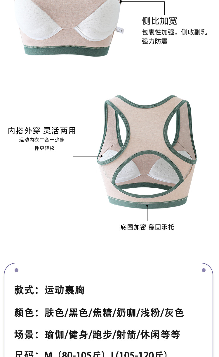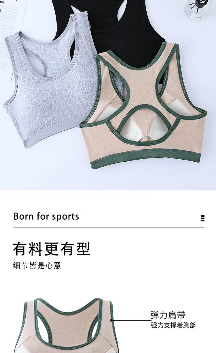 여성용 충격 방지 무테 개더링 조끼 스타일 속옷을 달리는 소녀와 학생을 위한 순면 원피스 라텍스 브라스토어 가기