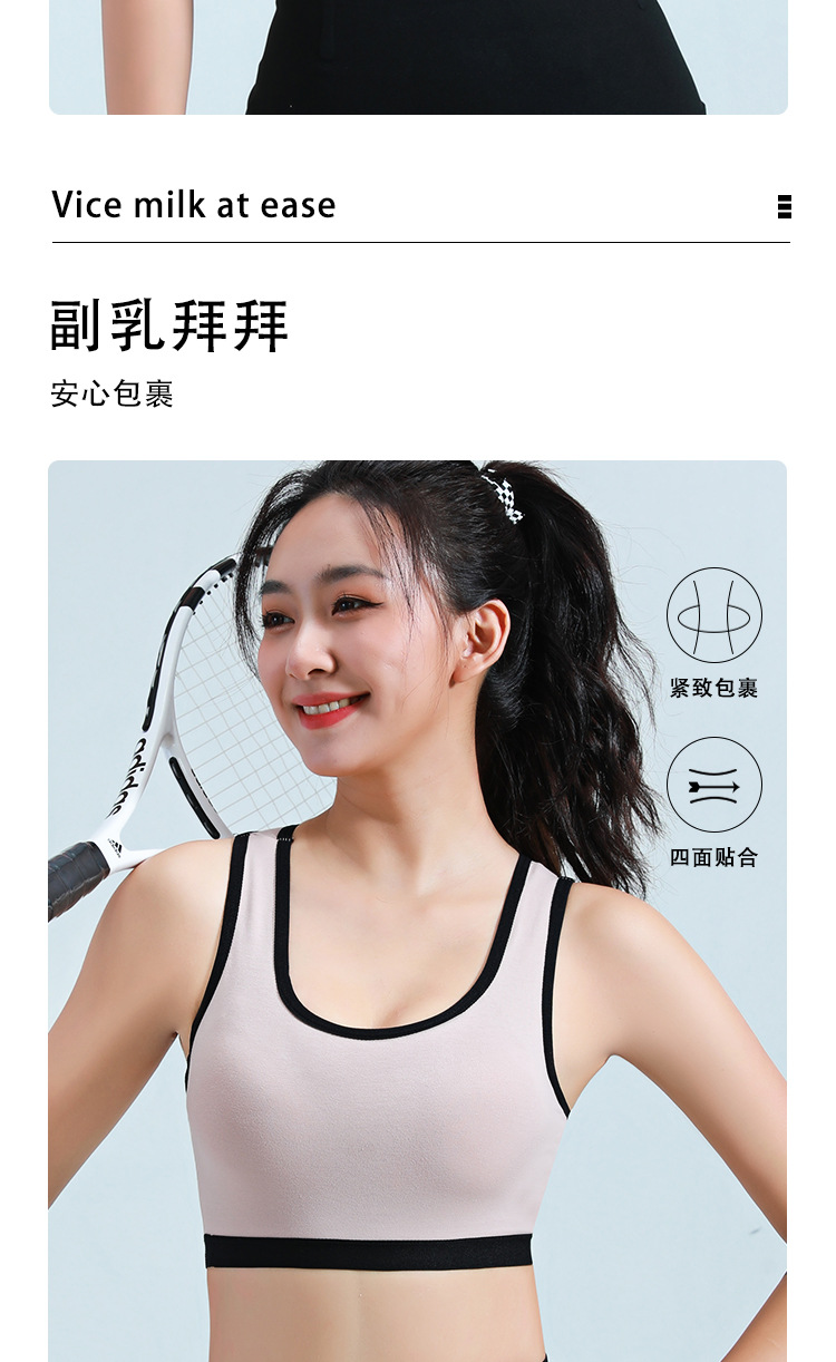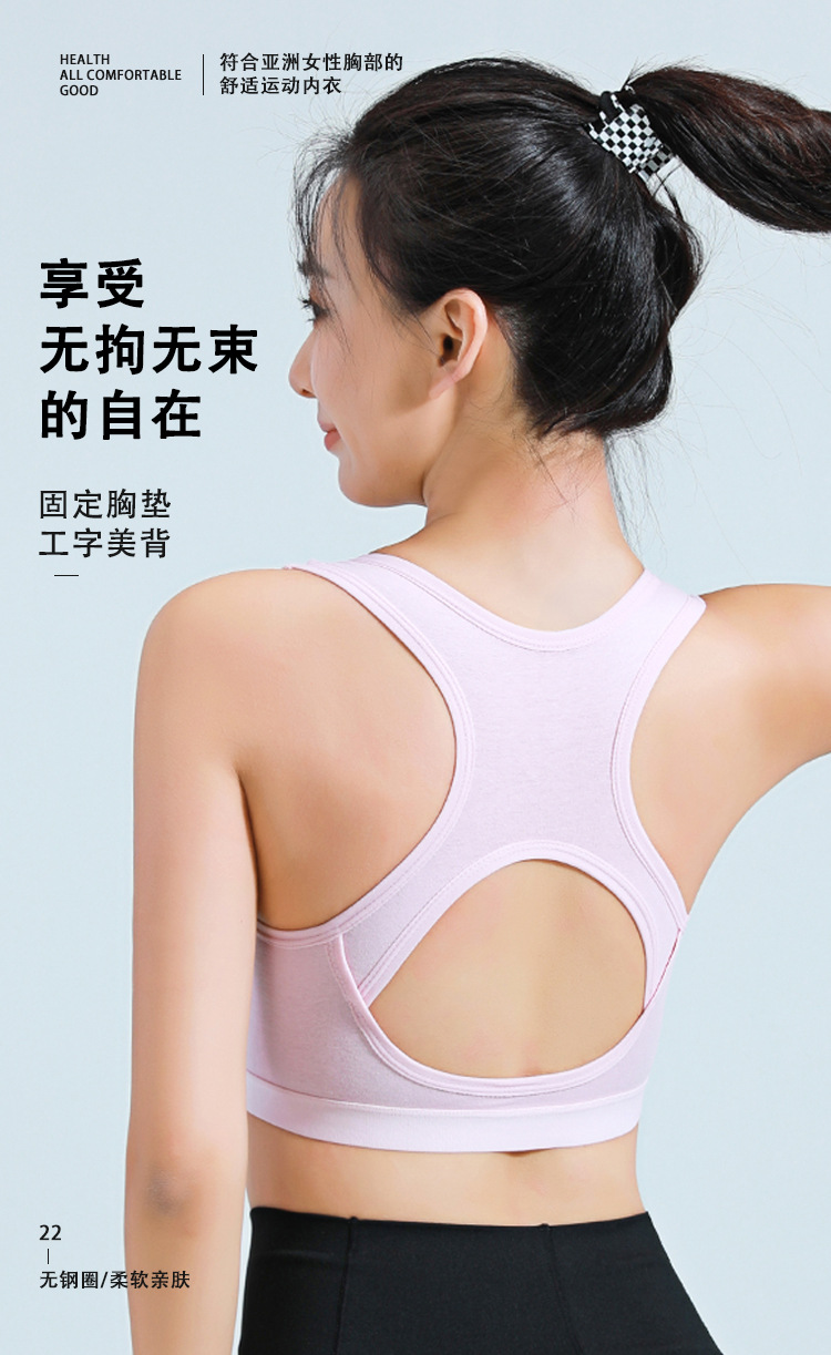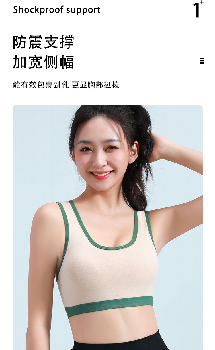 여성용 충격 방지 무테 개더링 조끼 스타일 속옷을 달리는 소녀와 학생을 위한 순면 원피스 라텍스 브라