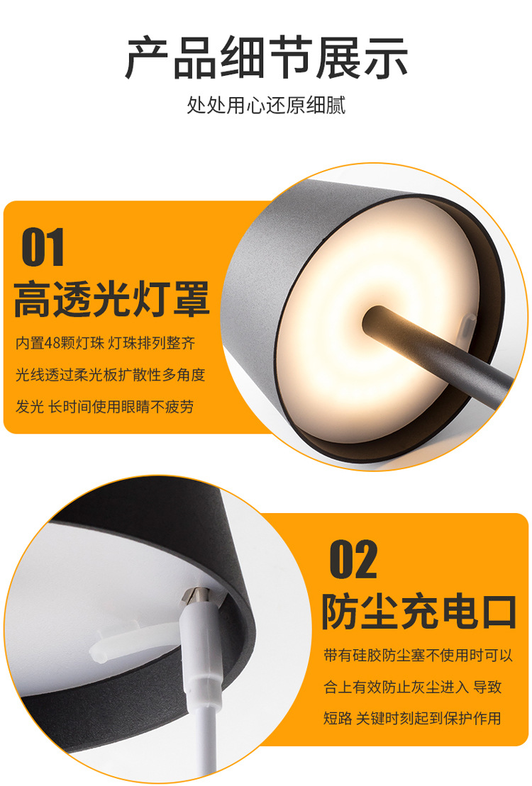 아마존 폭발 충전식 바 테이블 램프 터치 디밍 식탁 램프 카페 장식 테이블 램프 침대 옆 야간 조명