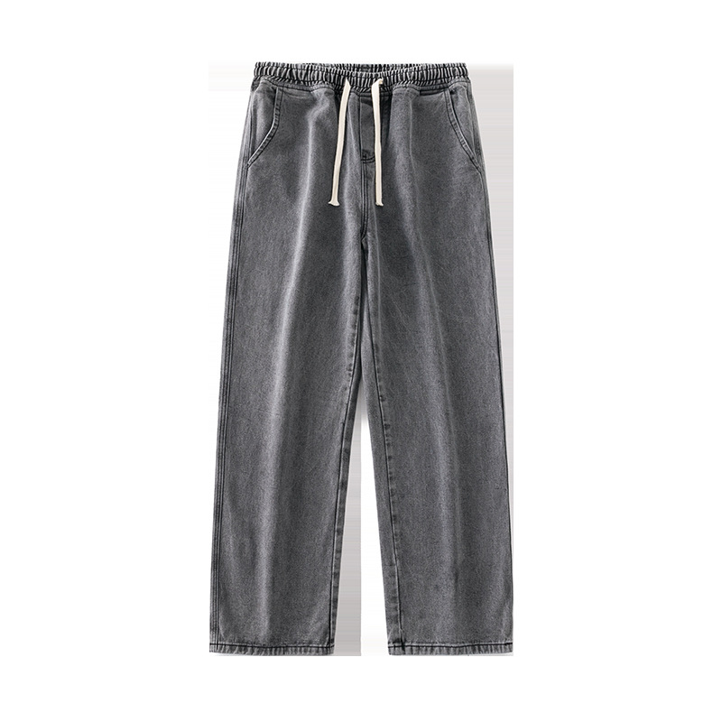 남자 청바지 신축성 있는 허리 스트레이트 루즈한 바지 봄 여름 2023 새로운 한국 유행 만능 캐주얼 바지스토어 가기