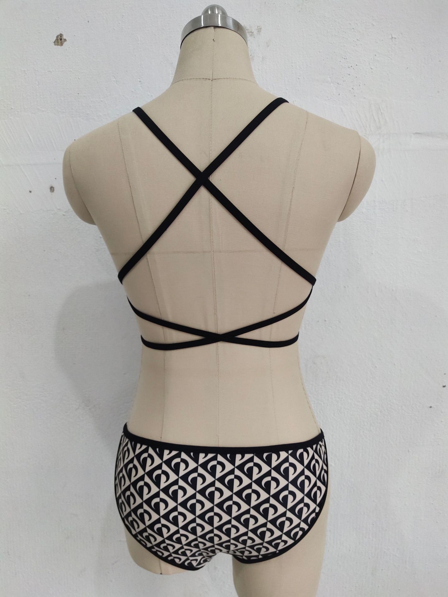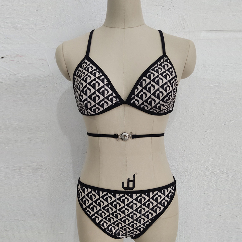 2023 새로운 유럽과 미국 대외 무역 레트로 비키니 모여 삼각형 소프트 백 디지털 인쇄 수영복 여성용 수영복