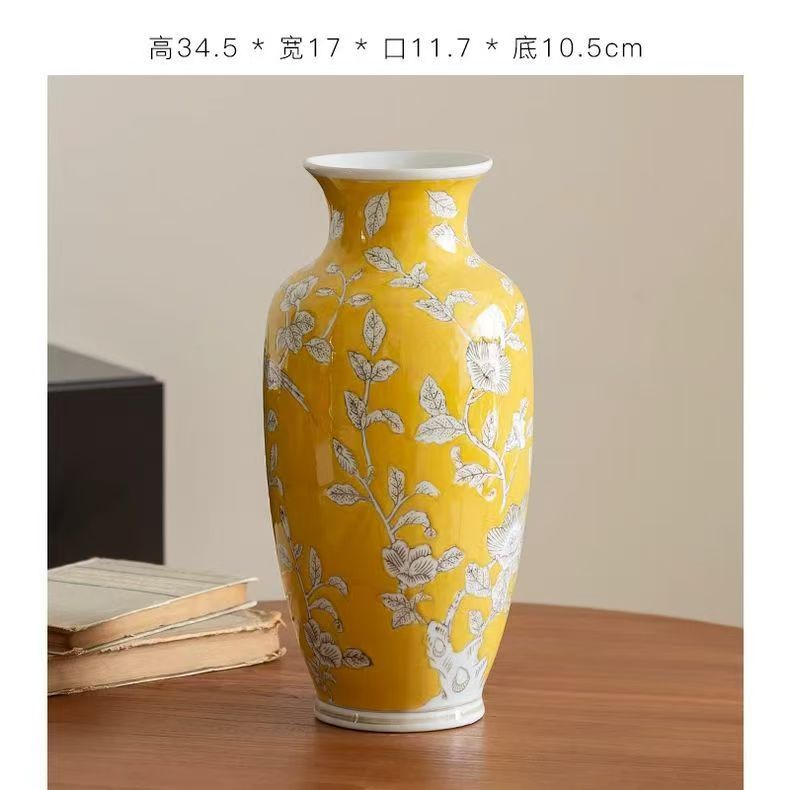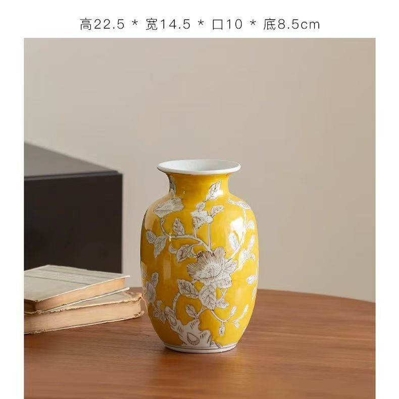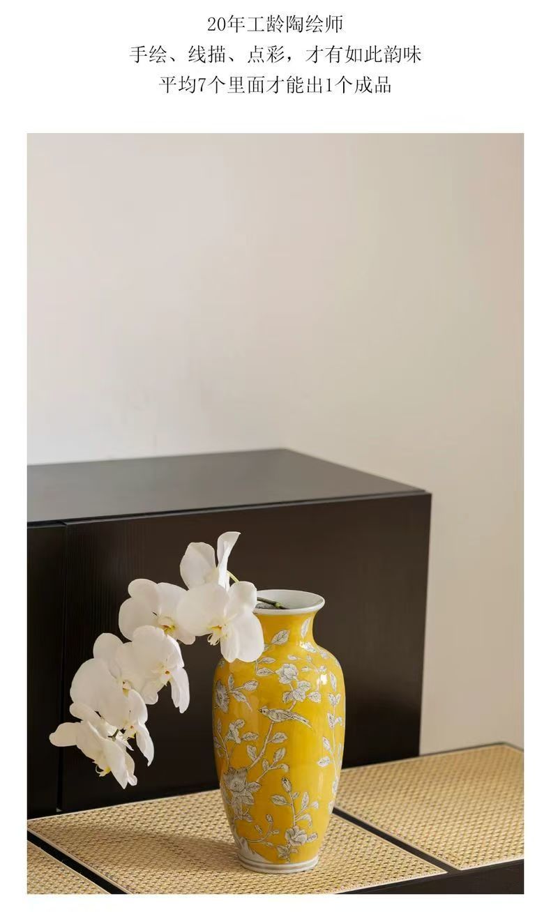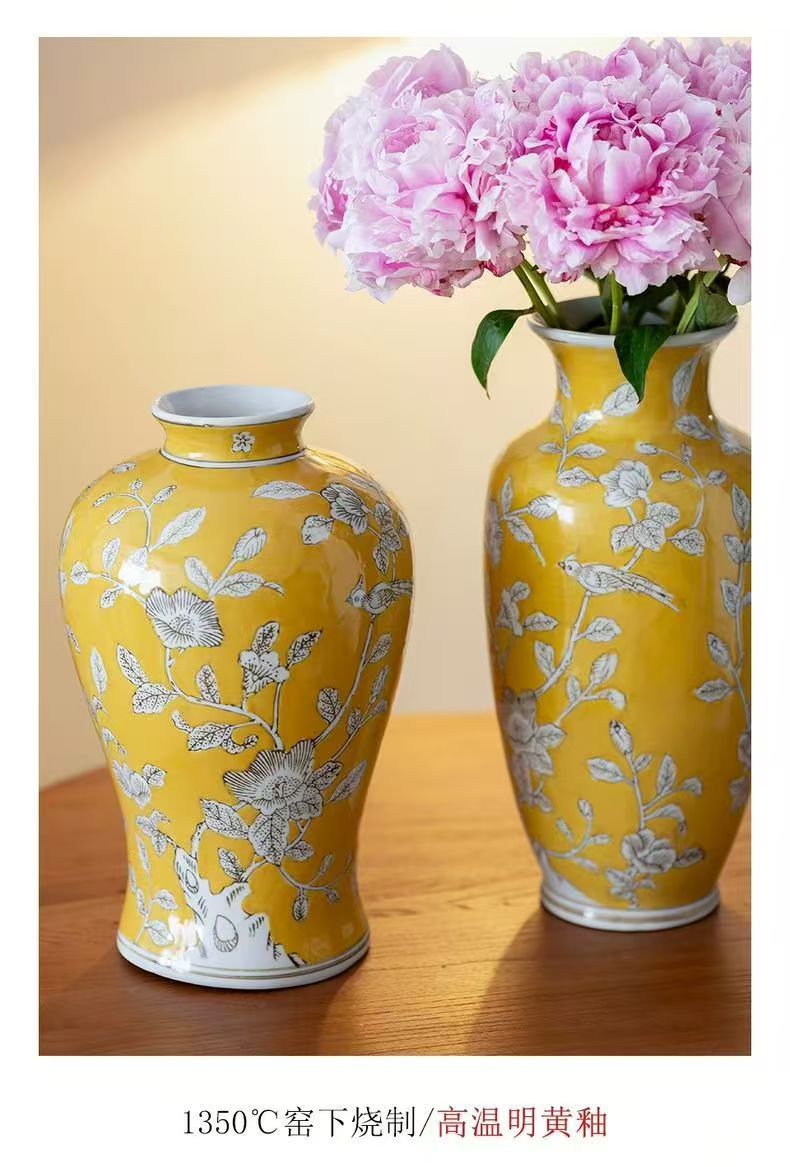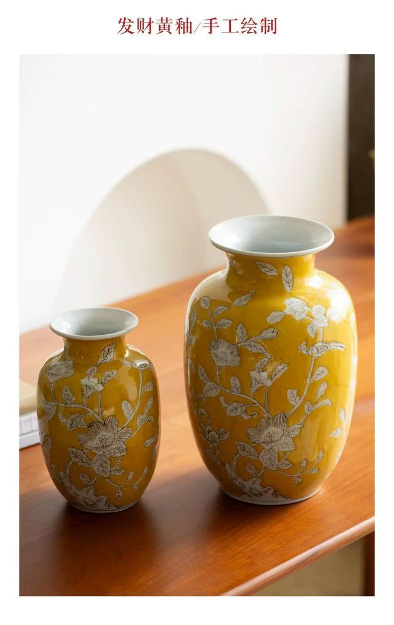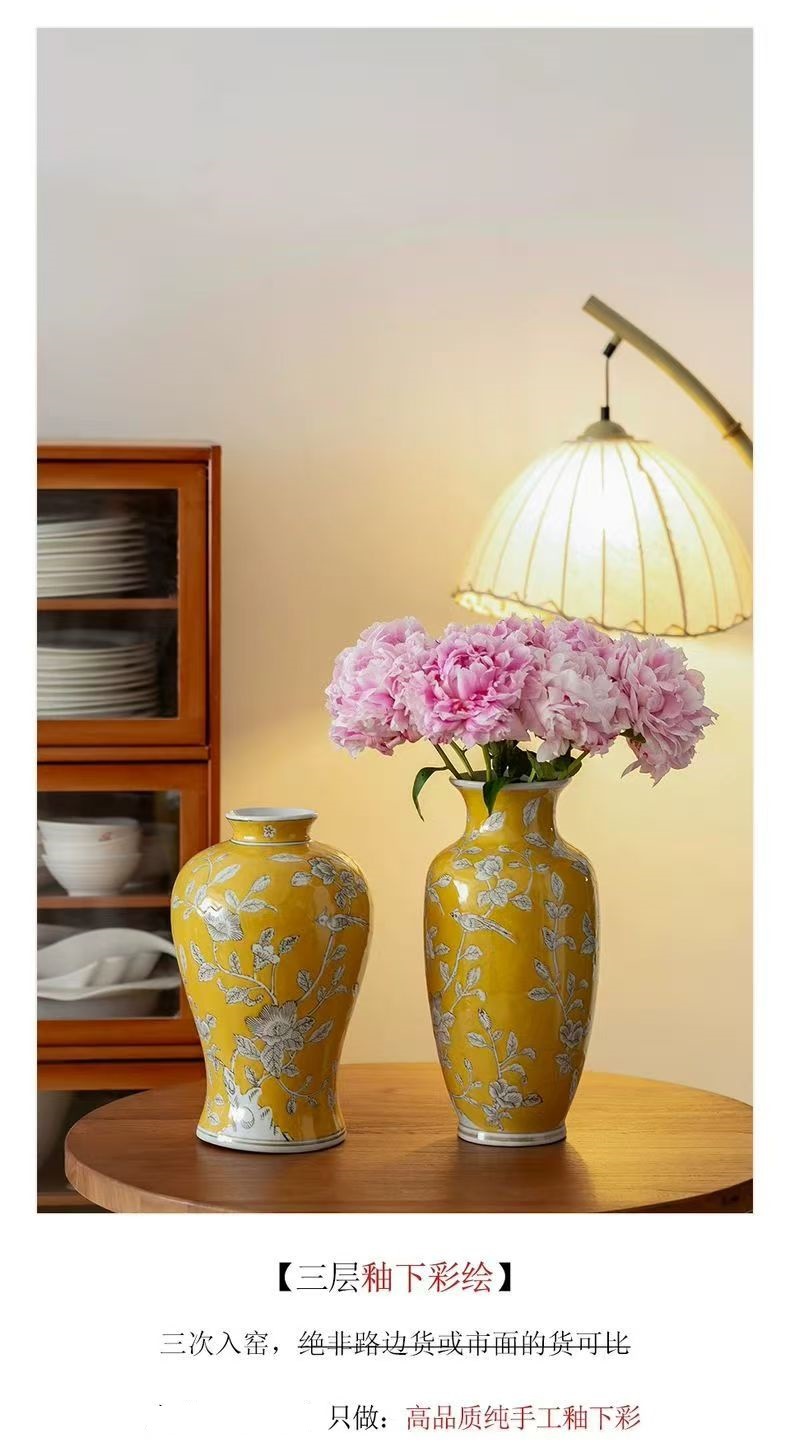 노란색 복고풍 꽃병 새로운 중국 스타일 손으로 그린 세라믹 꽃 세라믹 미국 스타일 장식 복고풍 도자기 고급 감각스토어 가기