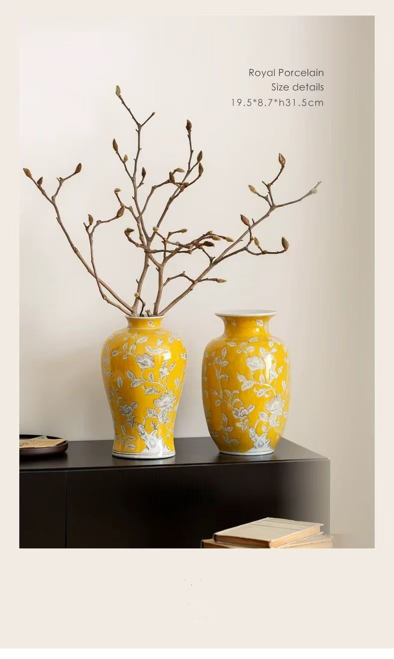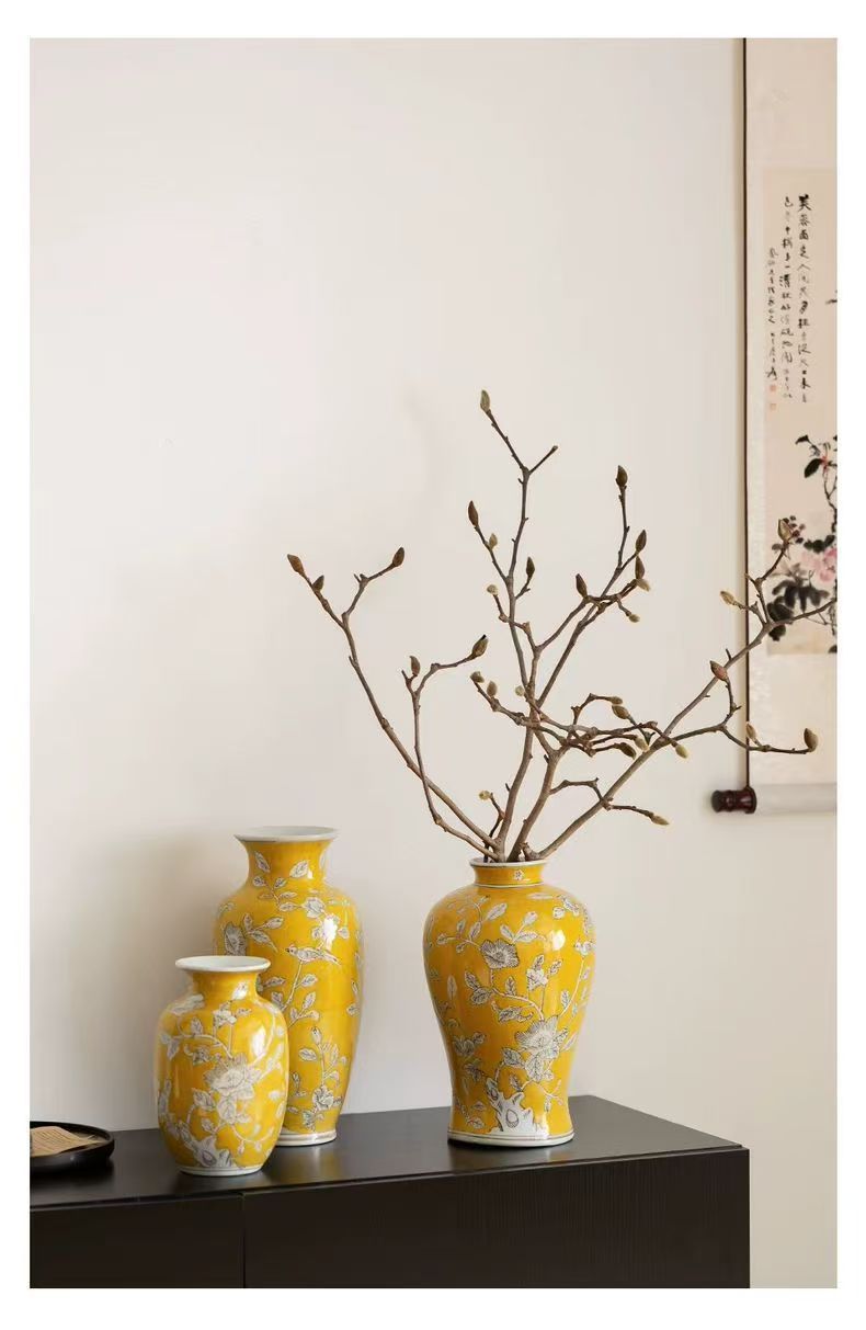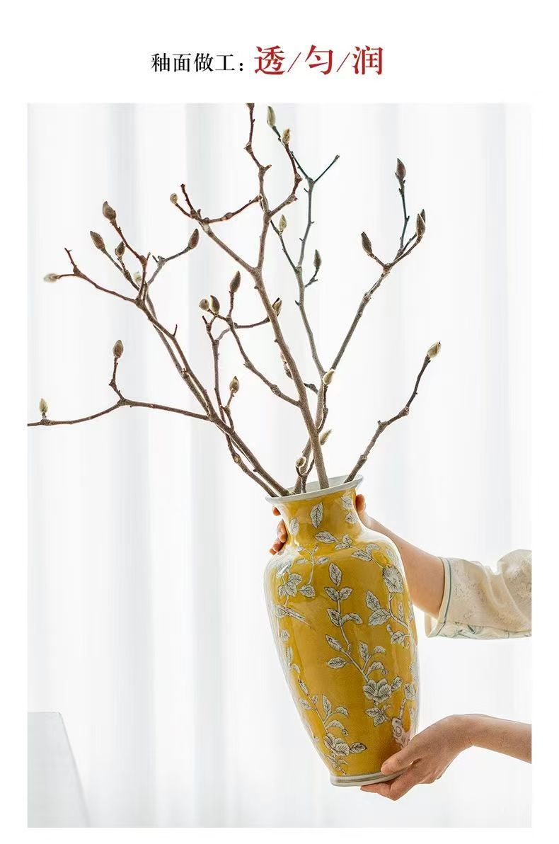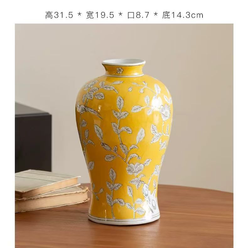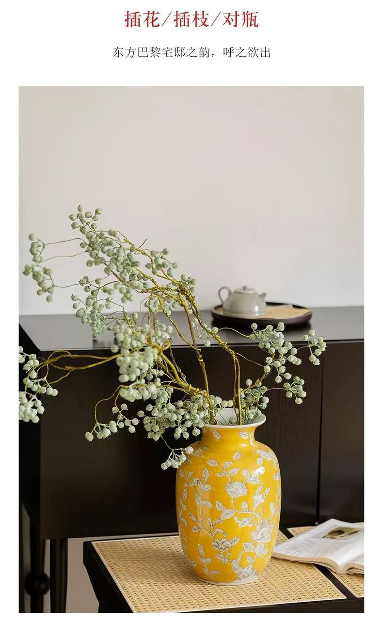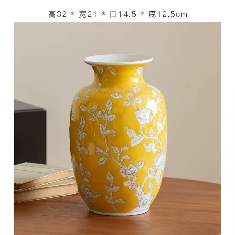 노란색 복고풍 꽃병 새로운 중국 스타일 손으로 그린 세라믹 꽃 세라믹 미국 스타일 장식 복고풍 도자기 고급 감각스토어 가기
