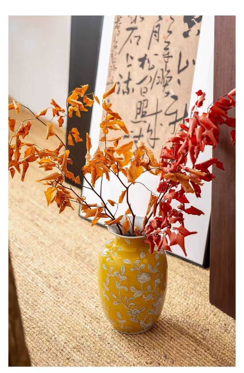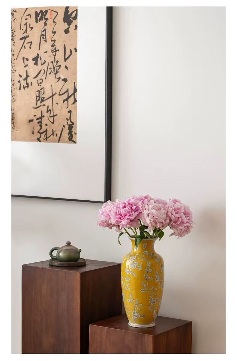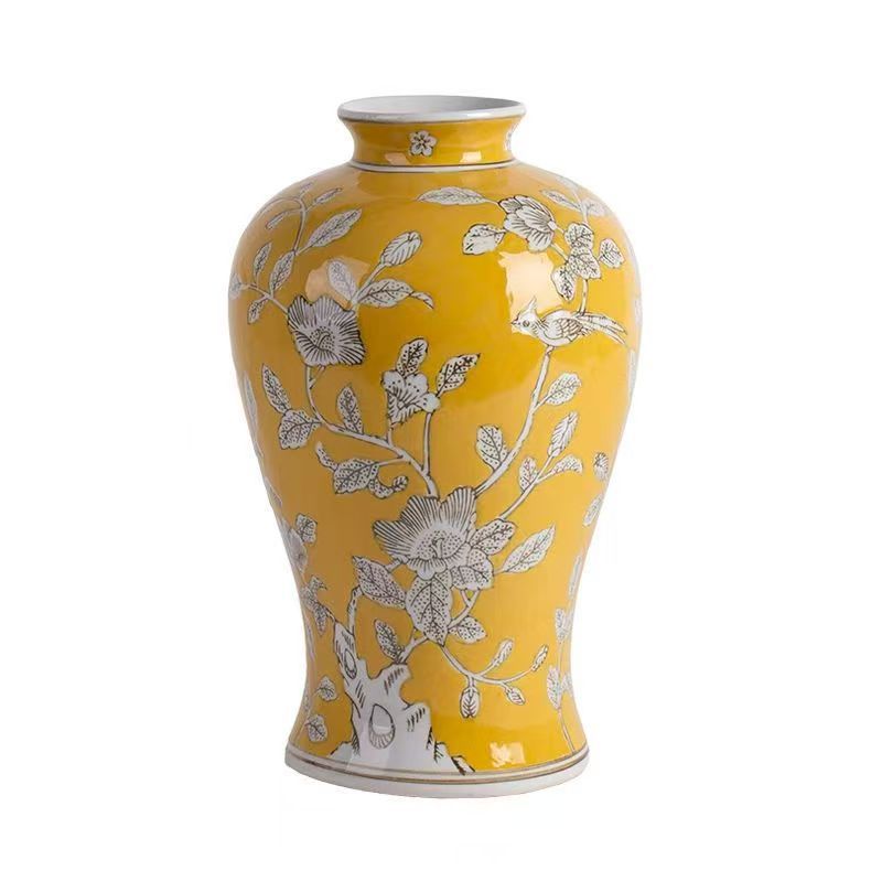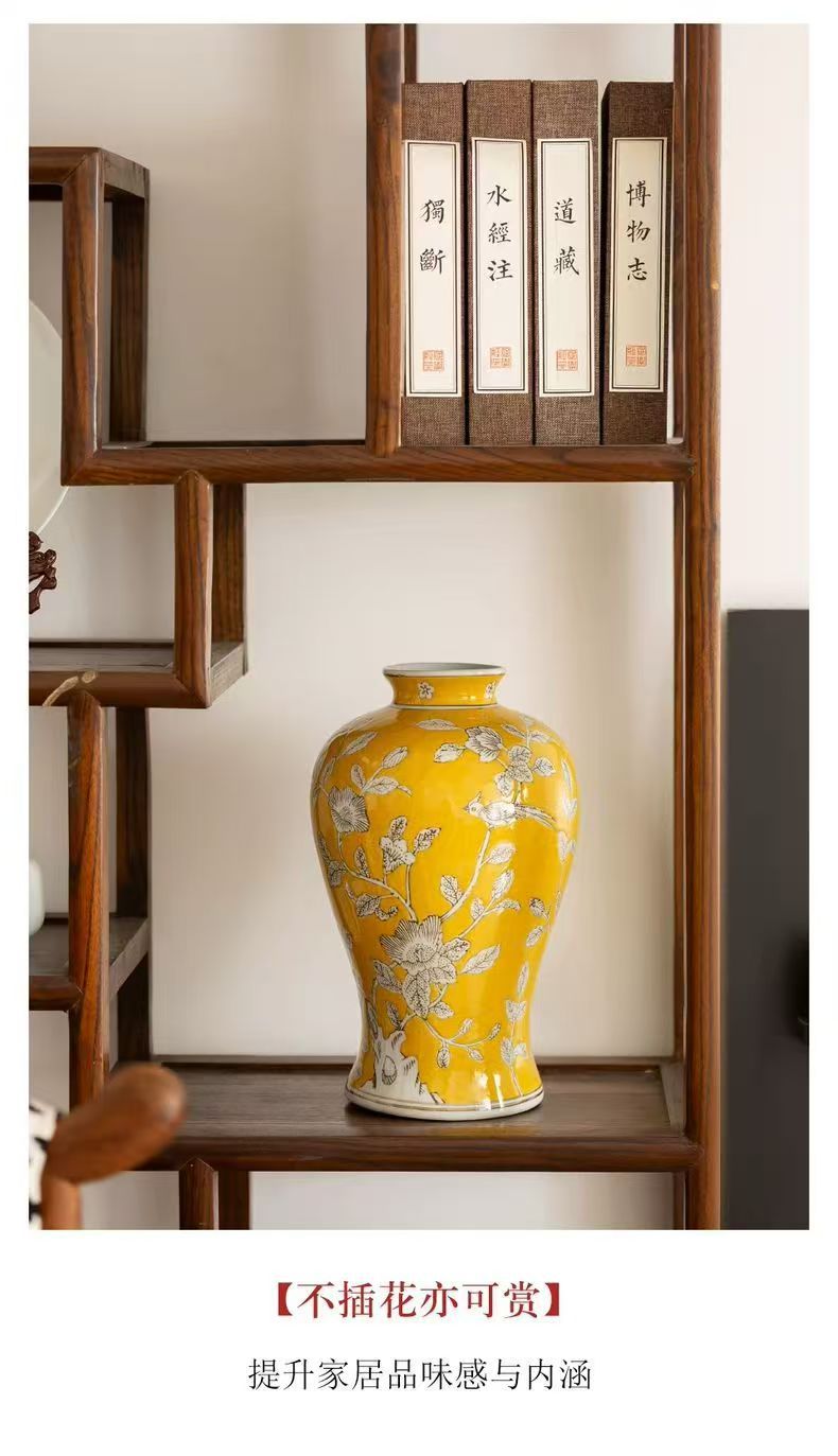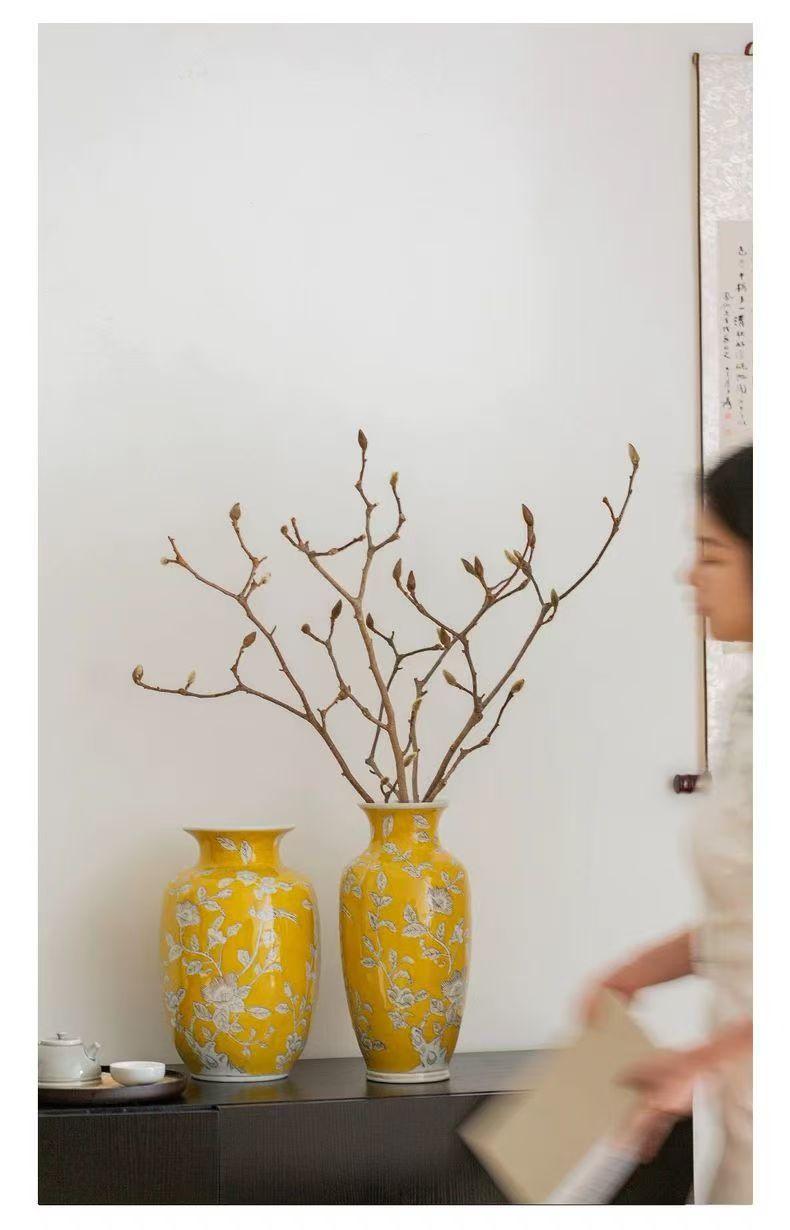 노란색 복고풍 꽃병 새로운 중국 스타일 손으로 그린 세라믹 꽃 세라믹 미국 스타일 장식 복고풍 도자기 고급 감각스토어 가기