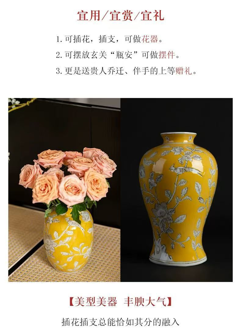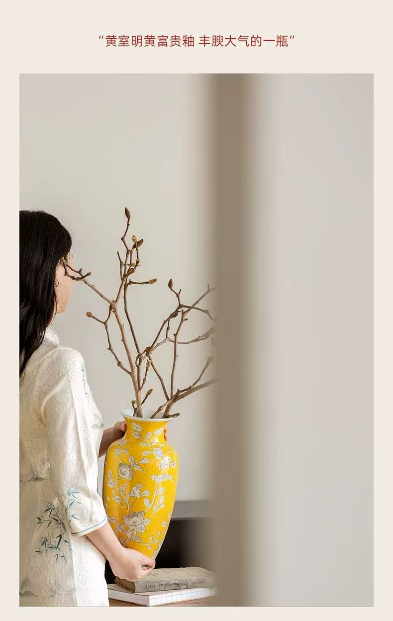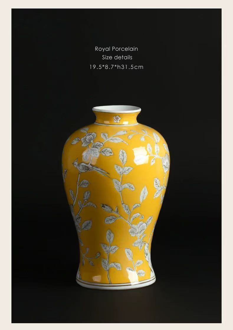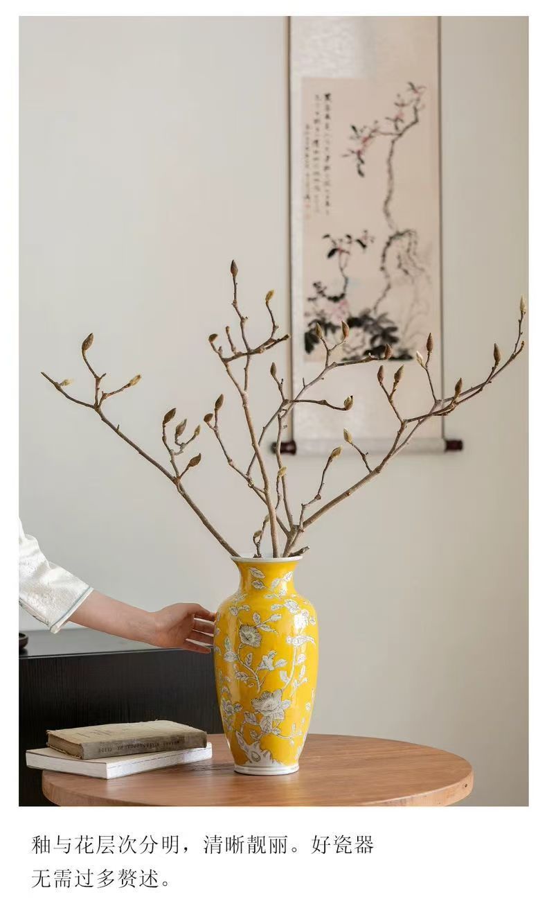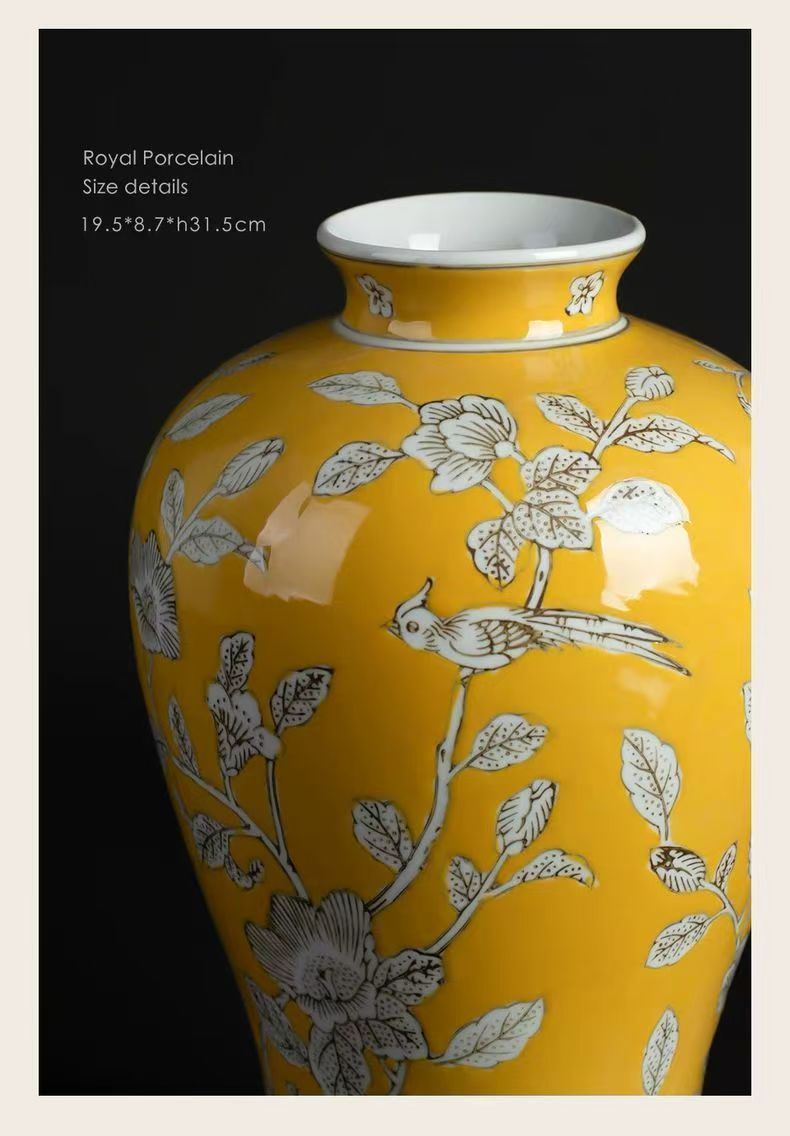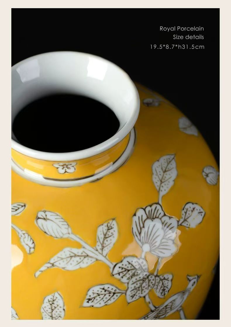 노란색 복고풍 꽃병 새로운 중국 스타일 손으로 그린 세라믹 꽃 세라믹 미국 스타일 장식 복고풍 도자기 고급 감각스토어 가기