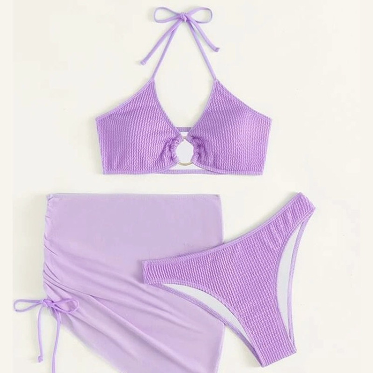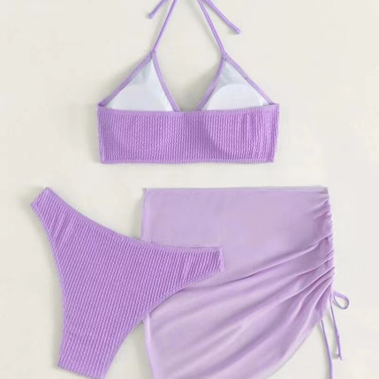 크로스 보더 비키니 유럽과 미국 스플릿 수영복 여성용 단색 섹시 수영복 3 종 세트 교수형 목 3 점 비키니스토어 가기
