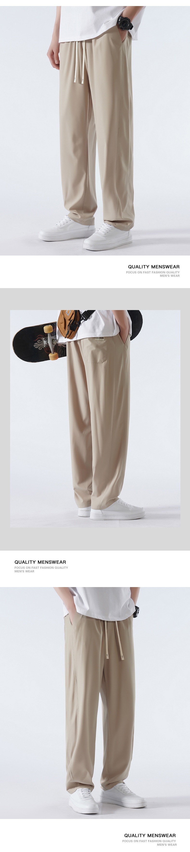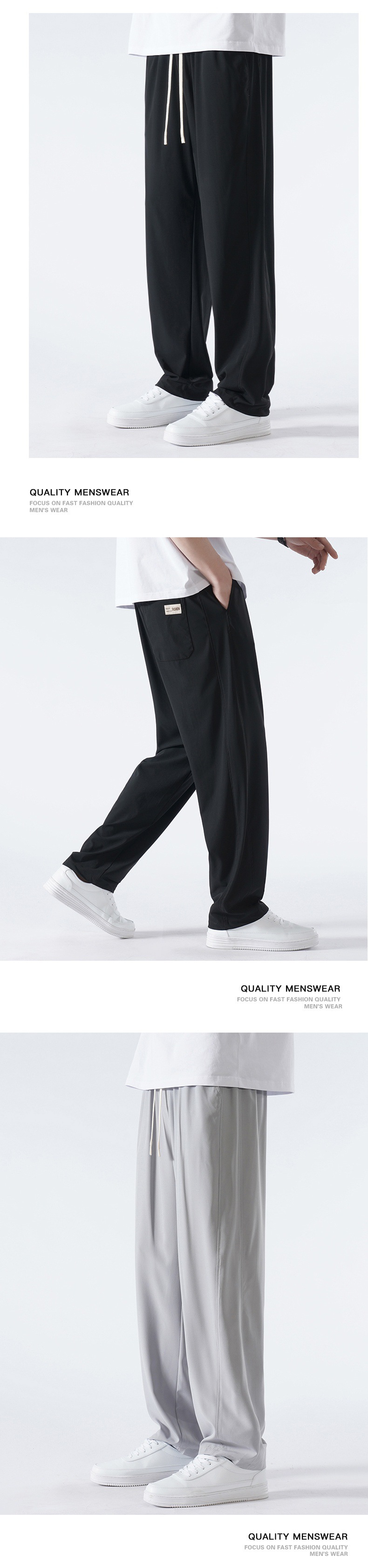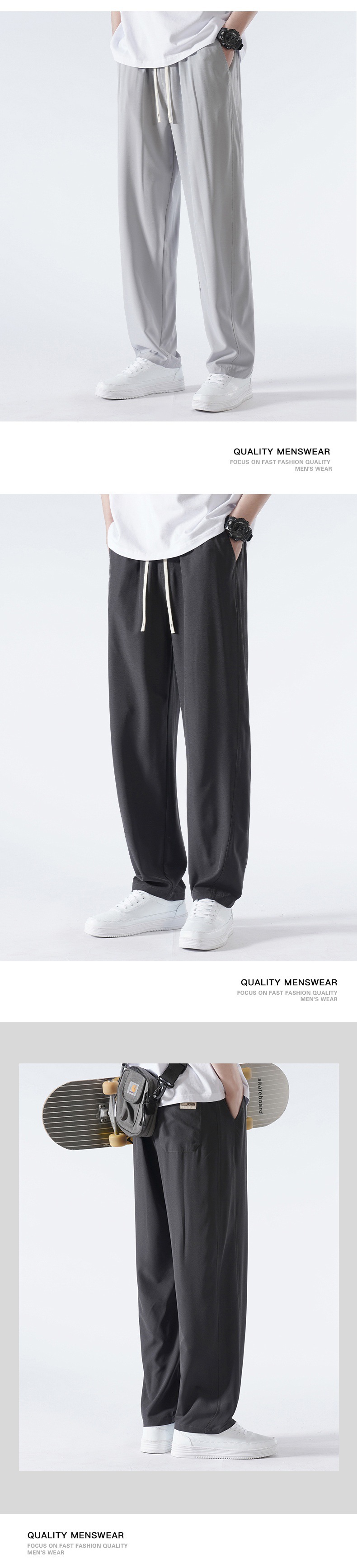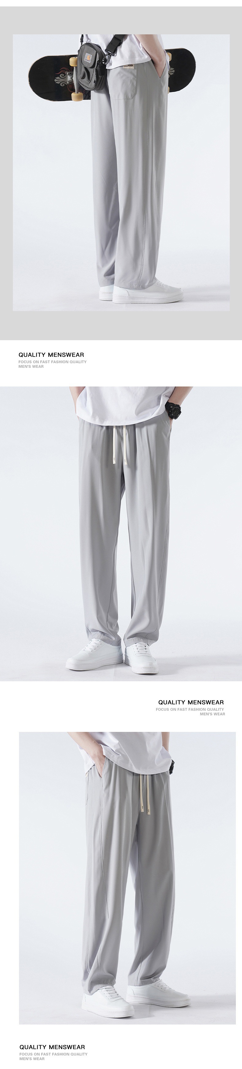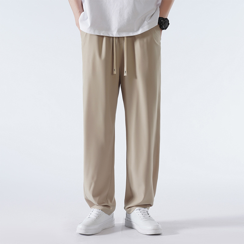 TikTok 폭발성 청소년 홍콩 스타일 스트레이트 트렌디 모든 매치 아이스 실크 캐주얼 바지 남성용 얇은 느슨한 와이드 레그 팬츠