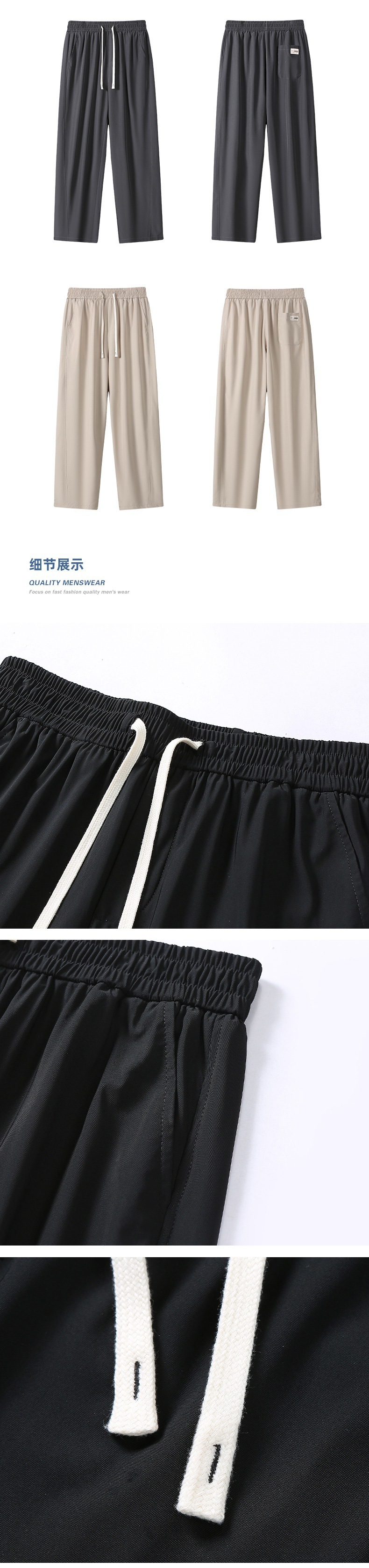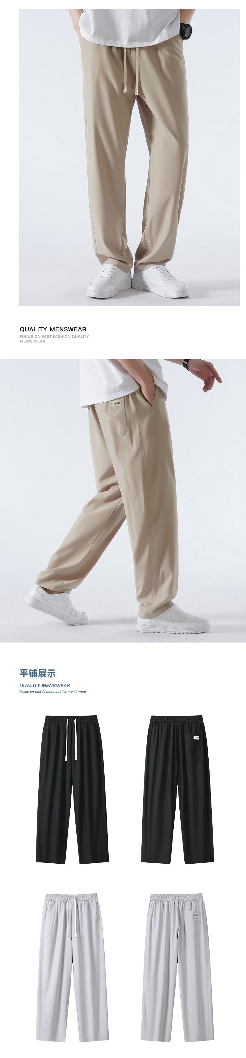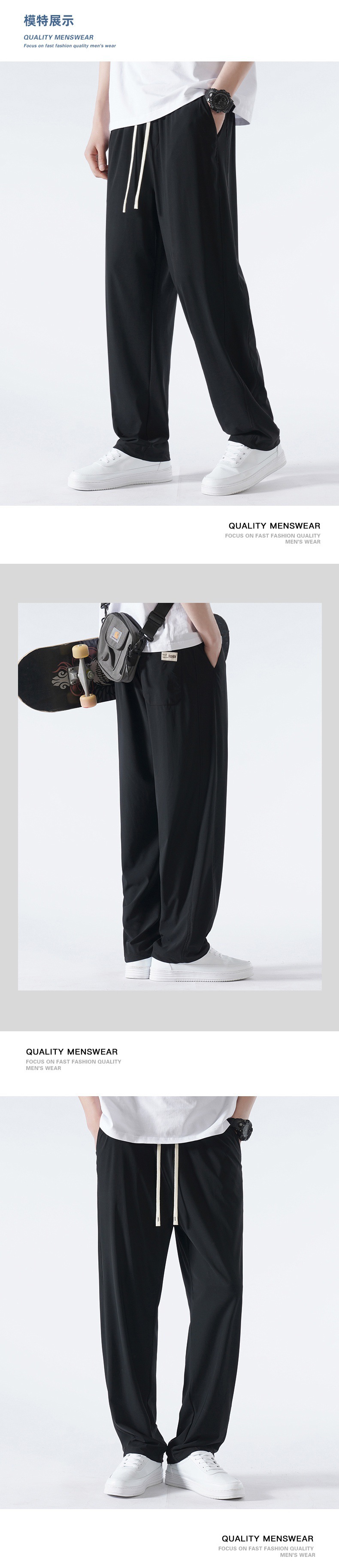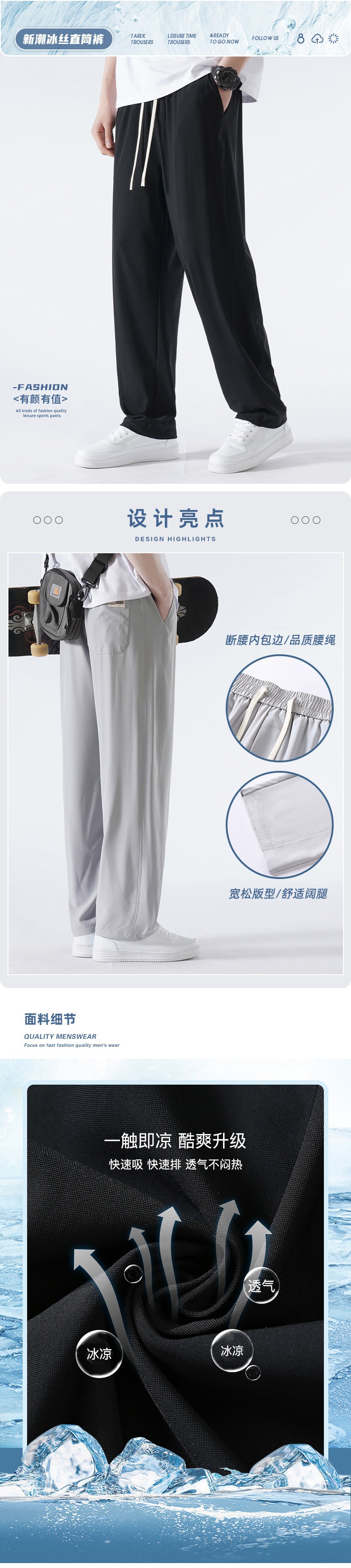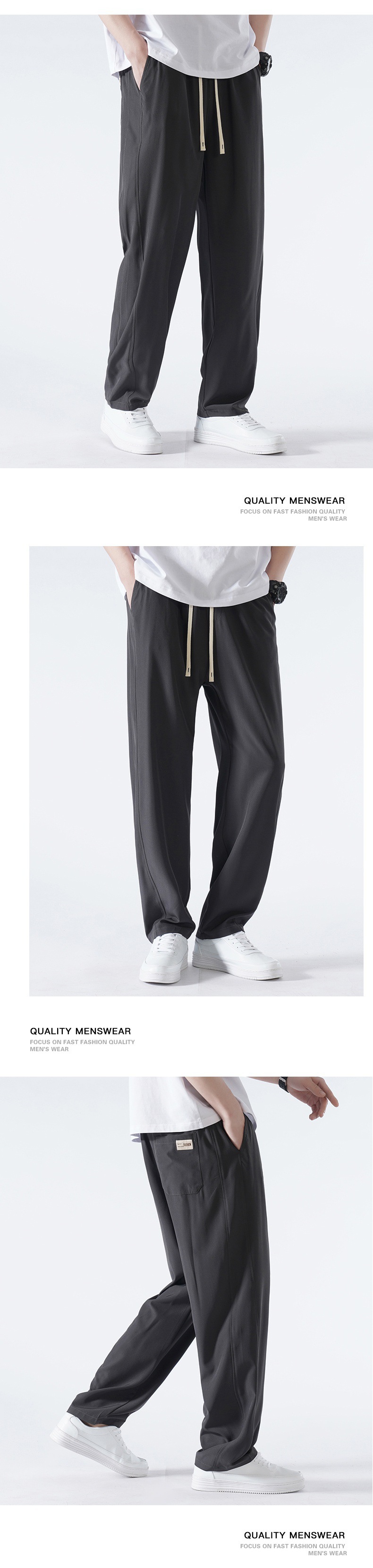 TikTok 폭발성 청소년 홍콩 스타일 스트레이트 트렌디 모든 매치 아이스 실크 캐주얼 바지 남성용 얇은 느슨한 와이드 레그 팬츠
