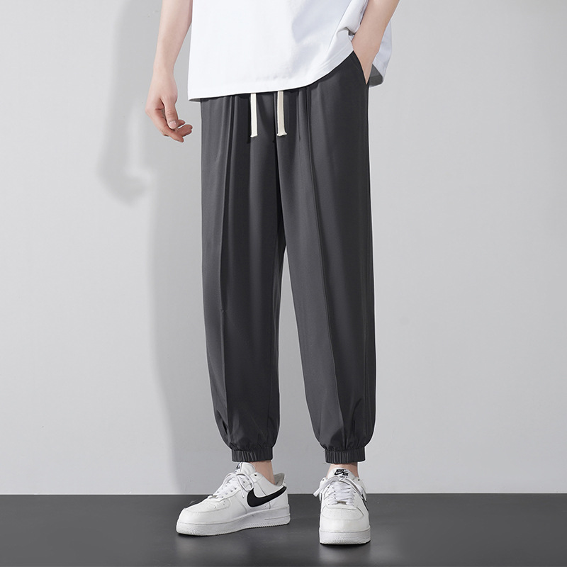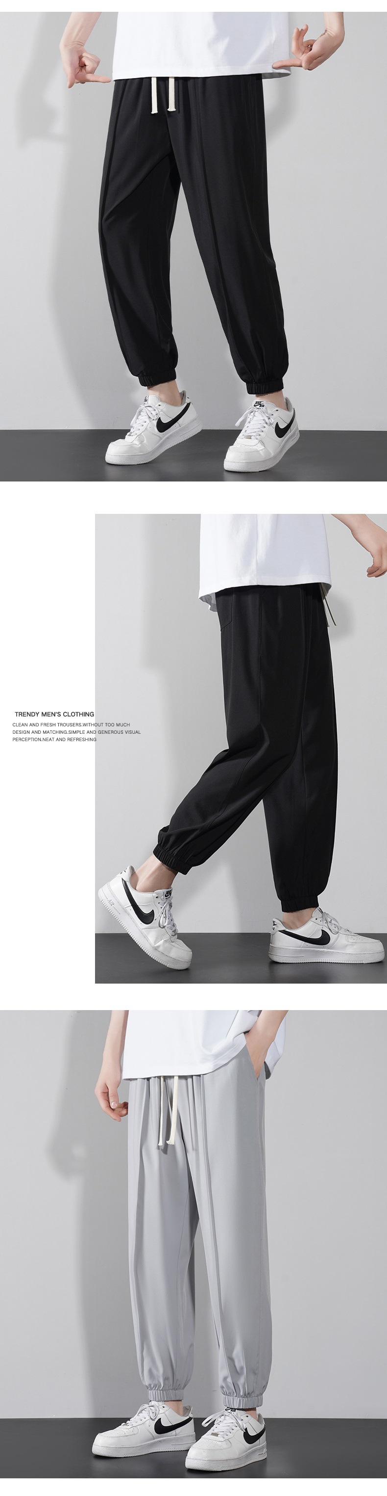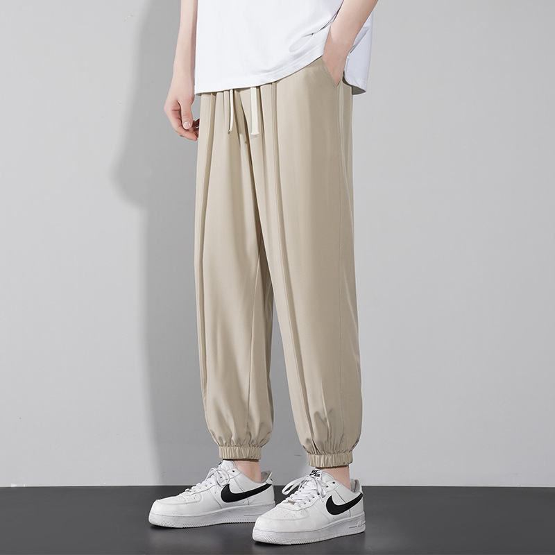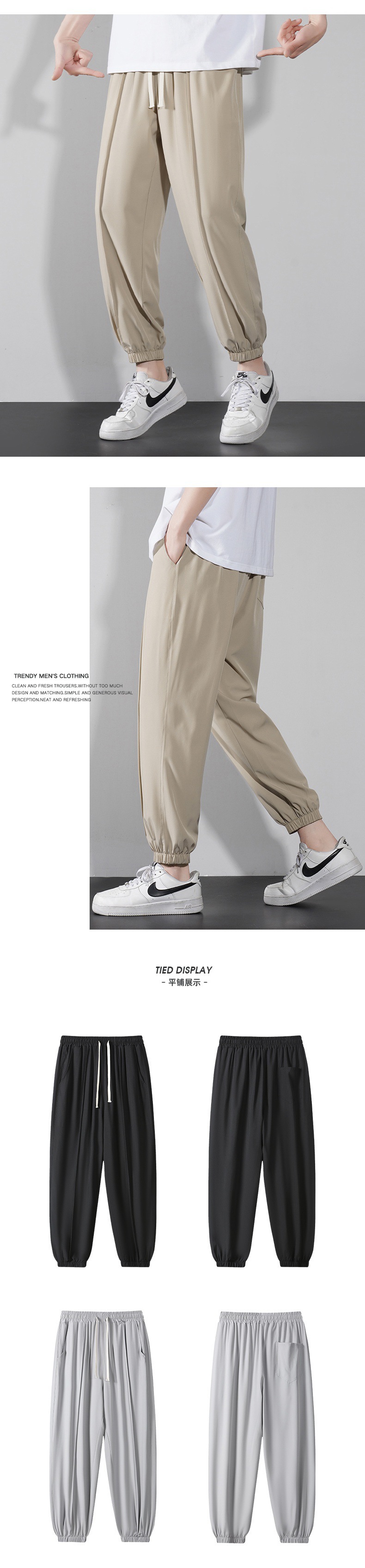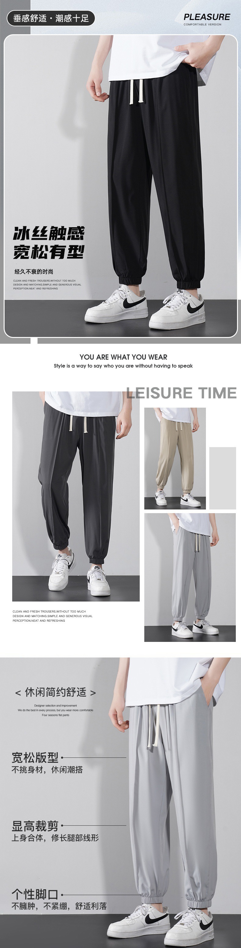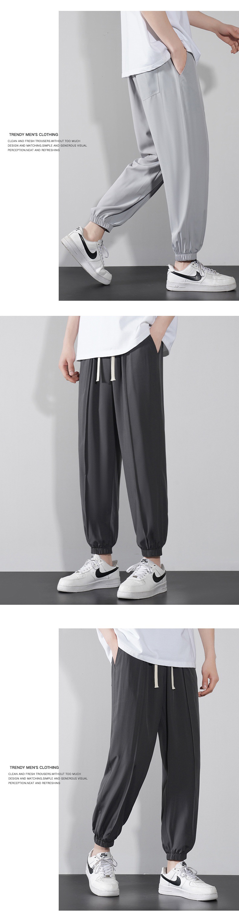 아이스 실크 바지 남성용 2023 여름 얇은 유행 느슨한 캐주얼 바지 타이업 하렌 바지 속건 스포츠 바지스토어 가기