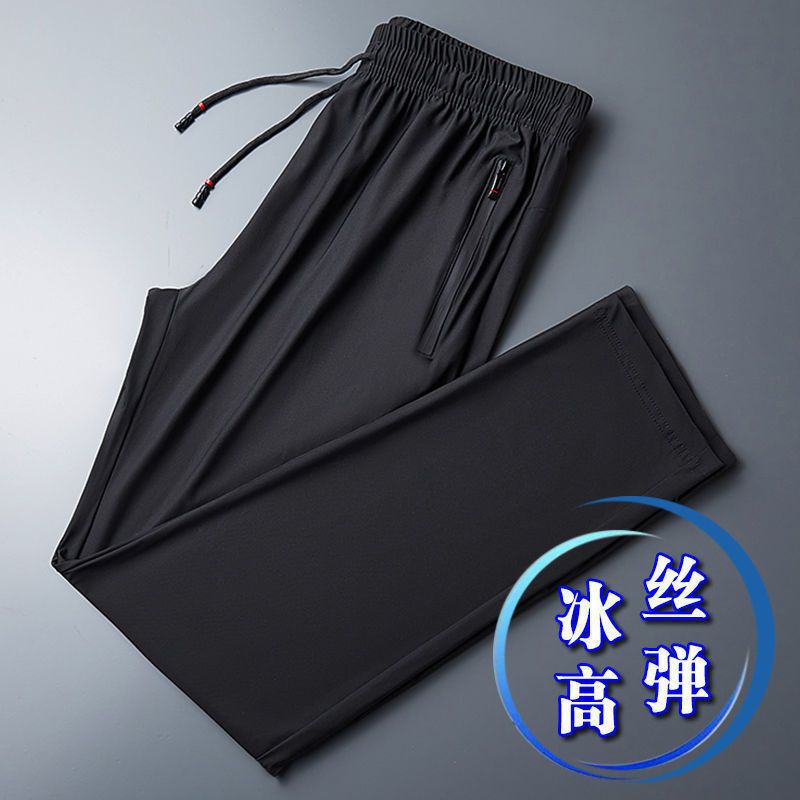 아이스 실크 캐주얼 바지 남자의 여름 얇은 다리 속건 스포츠 바지 느슨한 모든 일치 유행 플러스 사이즈 에어컨 바지
