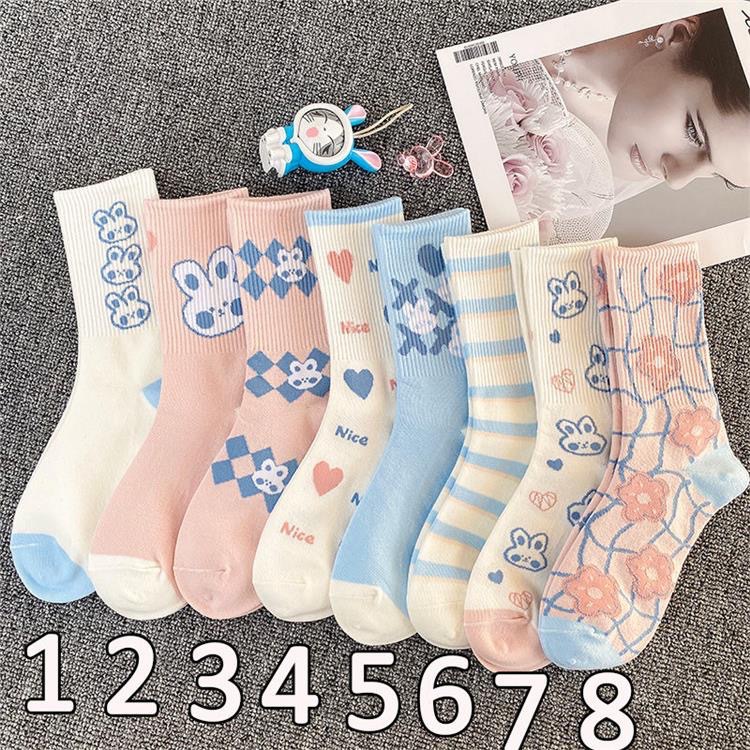 양말 여성용 중간 길이 양말 봄 가을 학생 유행 모든 매치 고가 모리 스타일 귀여운 토끼 흰색 스타킹 여성 양말스토어 가기