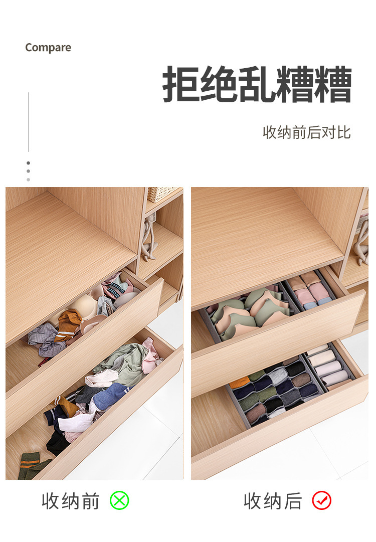속옷 보관함 양말 내부 바지 상자 분할 격자 서랍 형 어린이 반바지 분리 유물 가정용 마감 격자 무늬