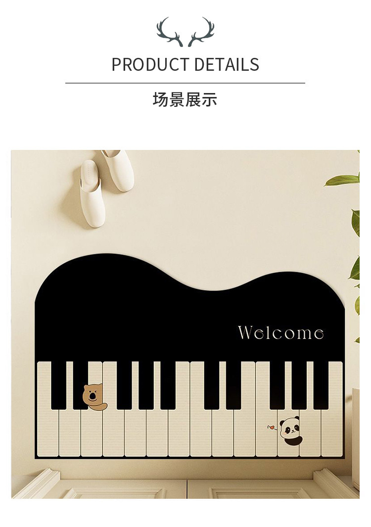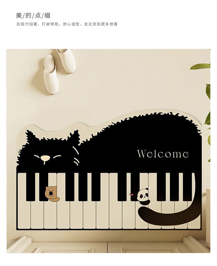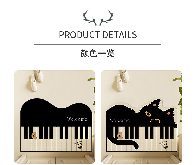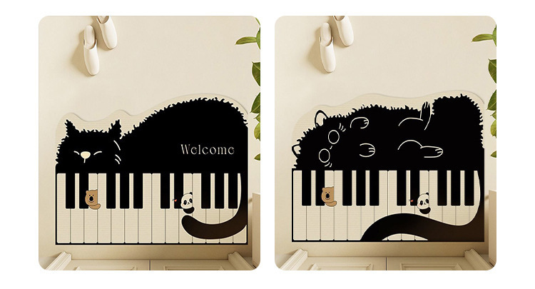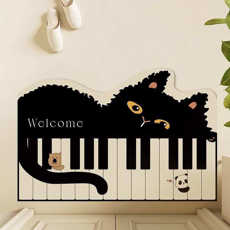 키티 피아노 크리스탈 벨벳 바닥 매트 욕실 문 흡수성 미끄럼 방지 발 매트 가정용 현관 문 바닥 매트스토어 가기