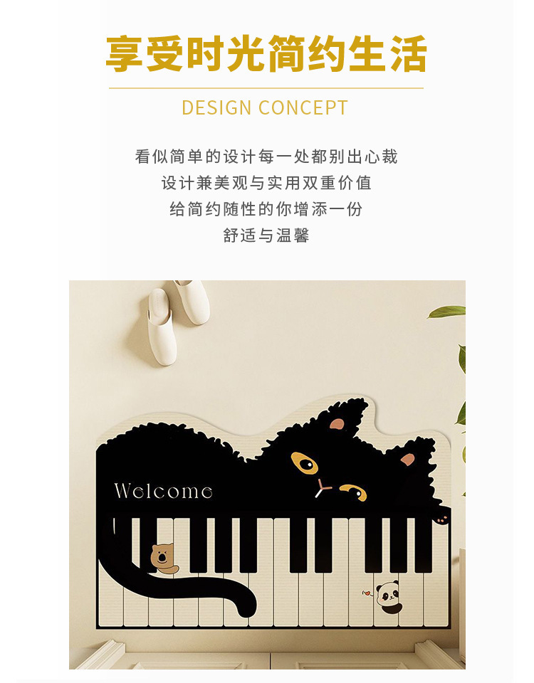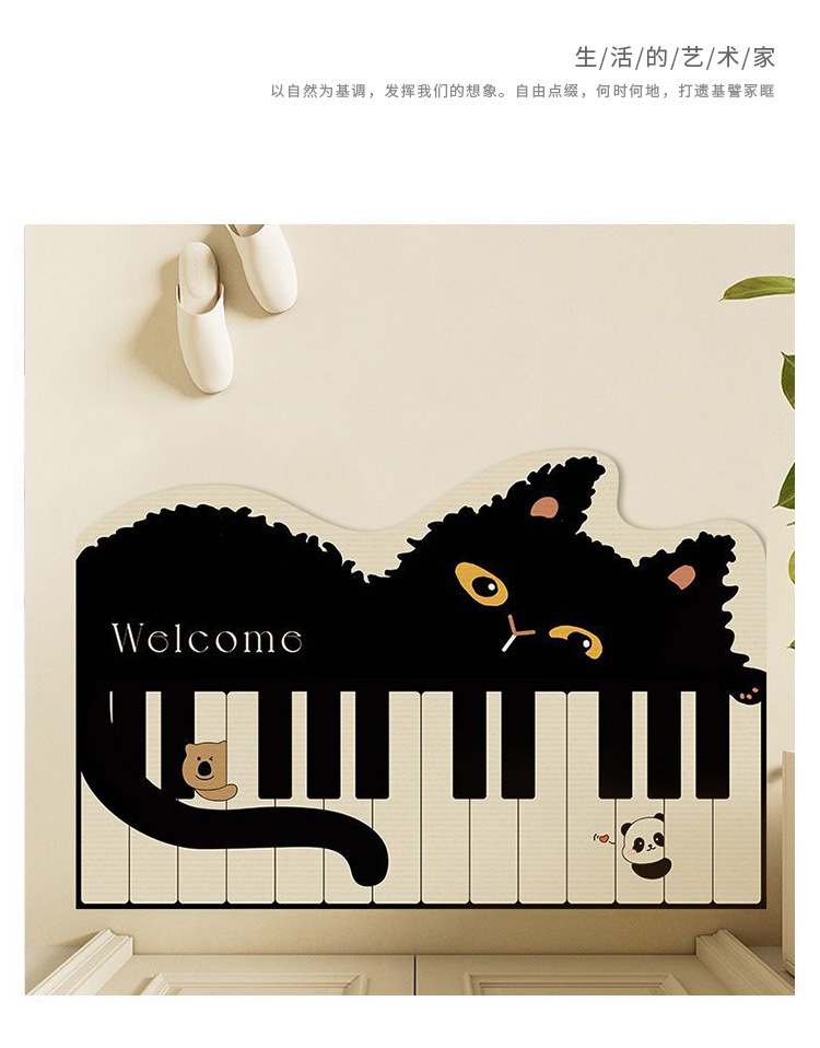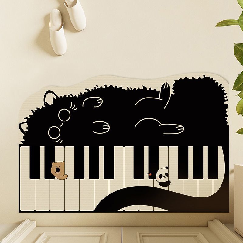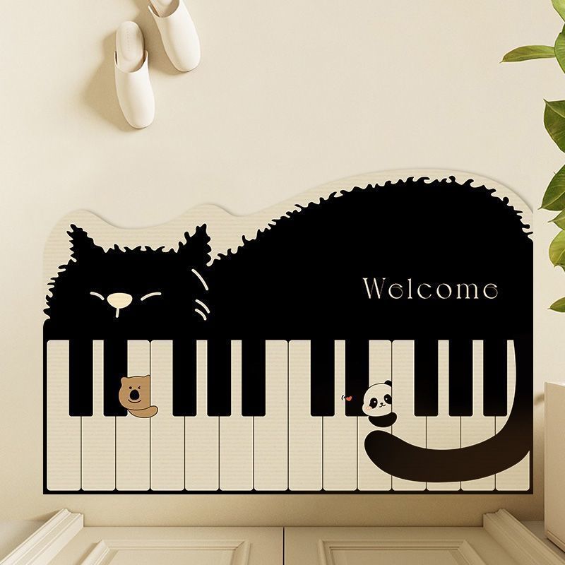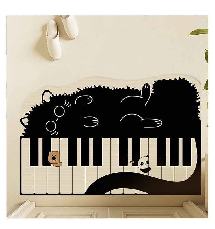 키티 피아노 크리스탈 벨벳 바닥 매트 욕실 문 흡수성 미끄럼 방지 발 매트 가정용 현관 문 바닥 매트