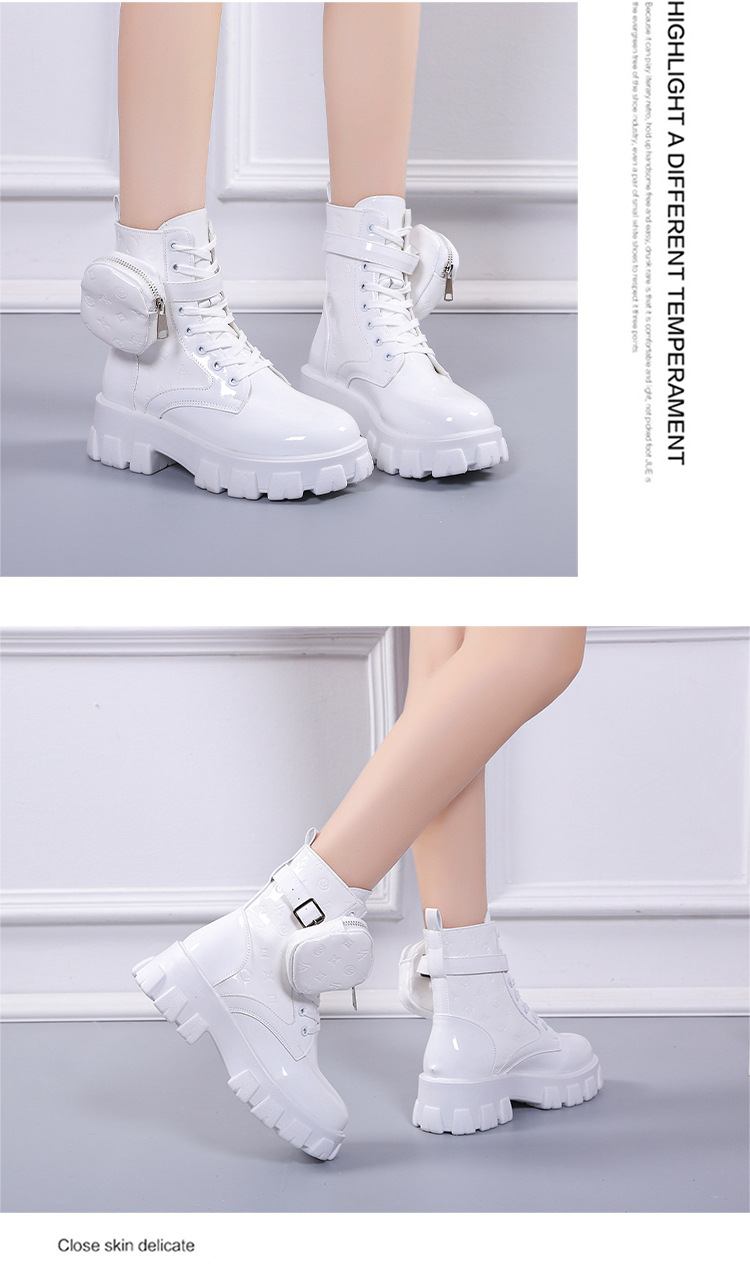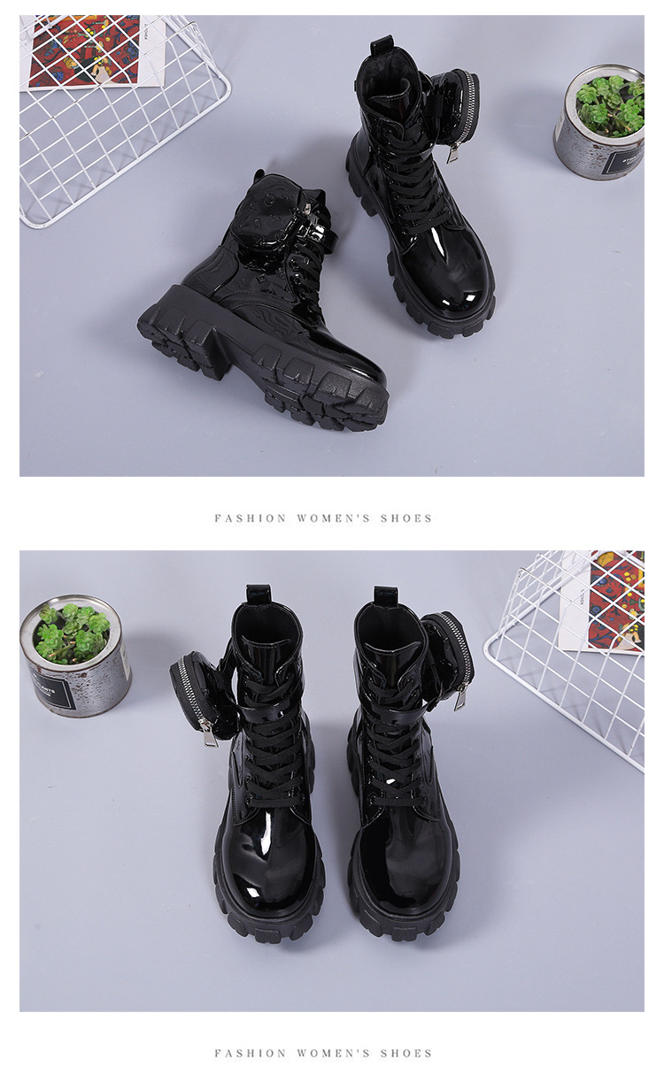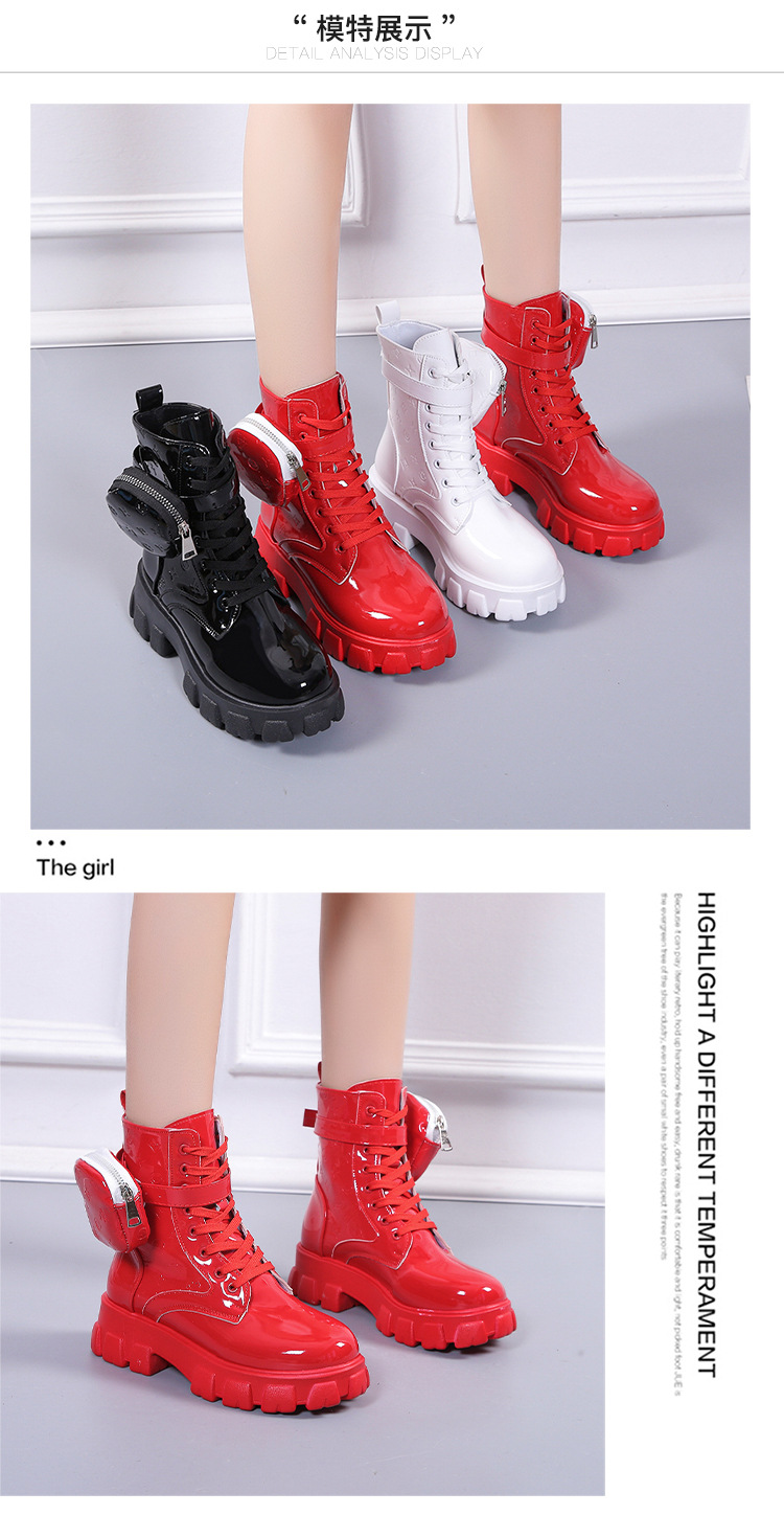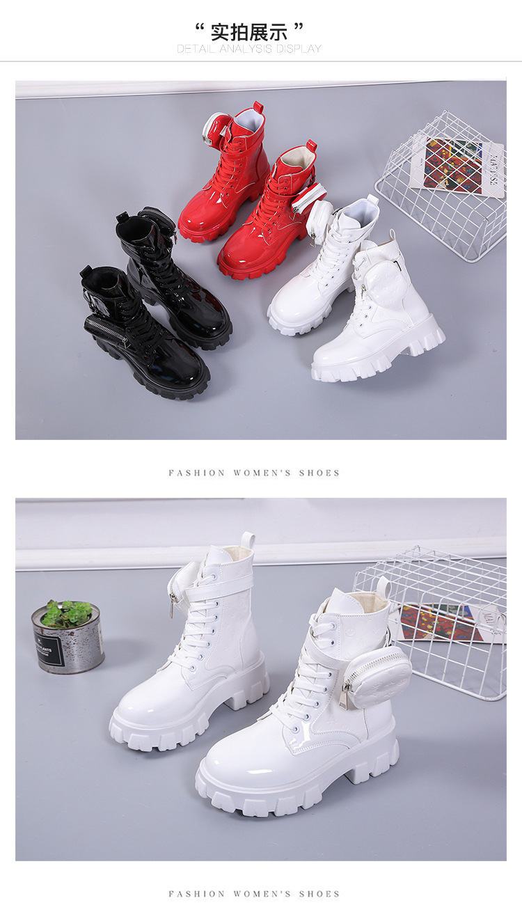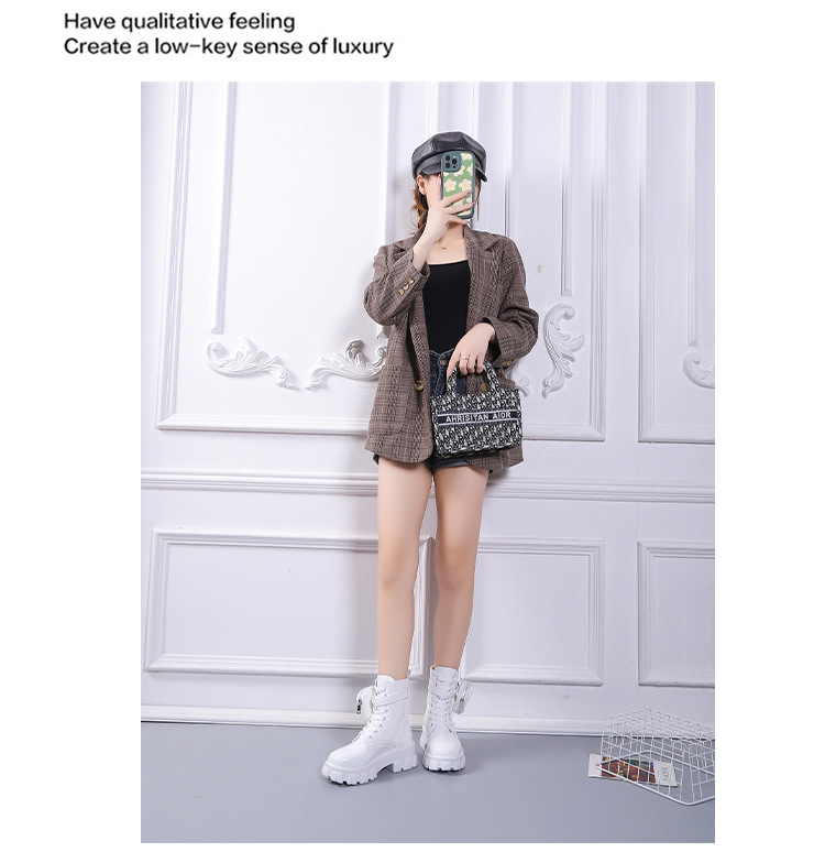 여성용 마틴 부츠 2023 여름 새로운 두꺼운 밑창 둥근 발가락 벨트 버클 작은 사첼 영국 스타일의 중간 송아지 부츠 플러스 사이즈 도매스토어 가기