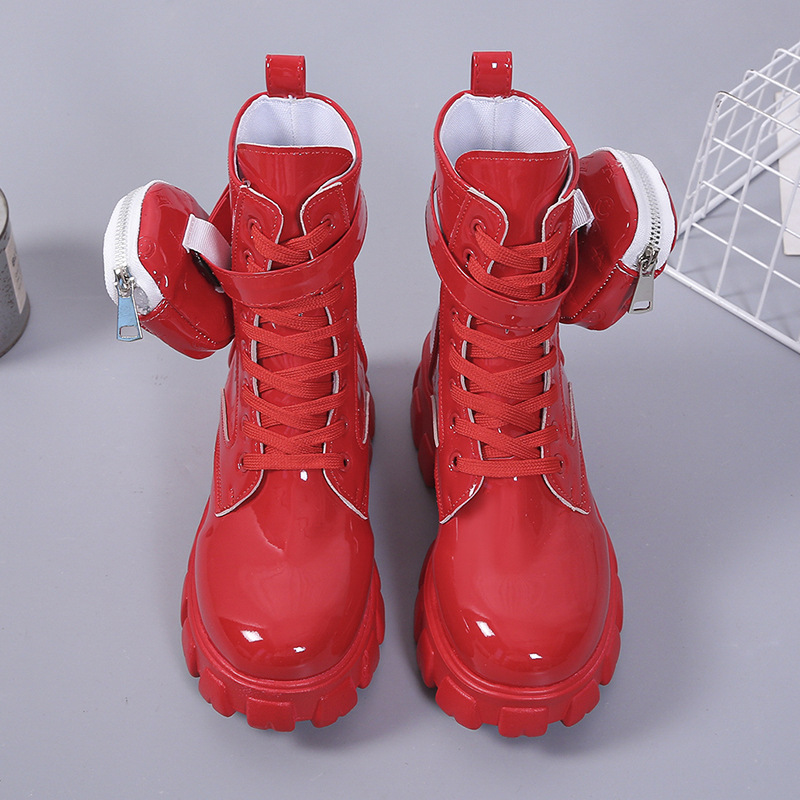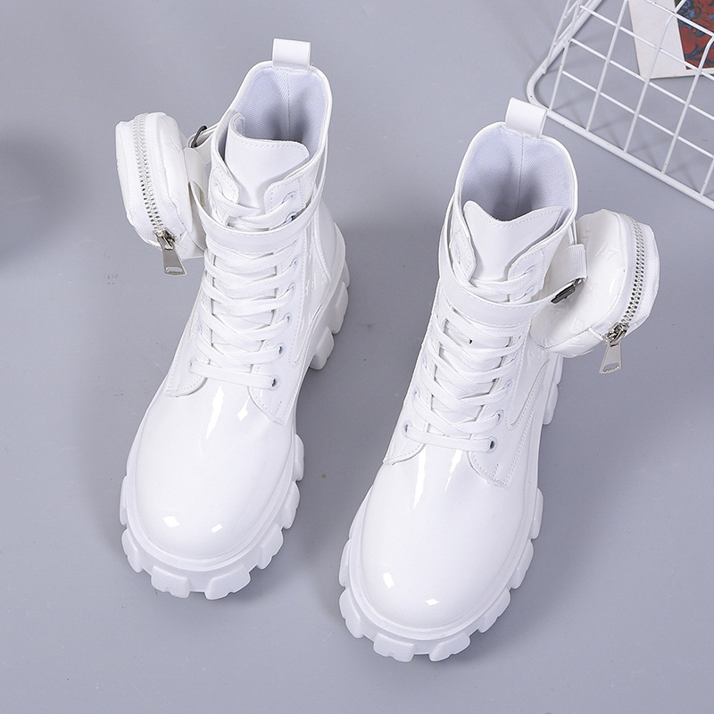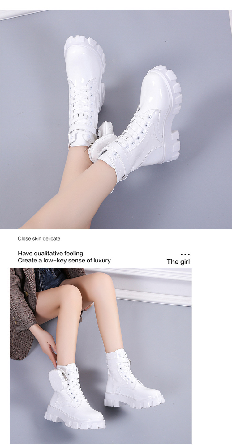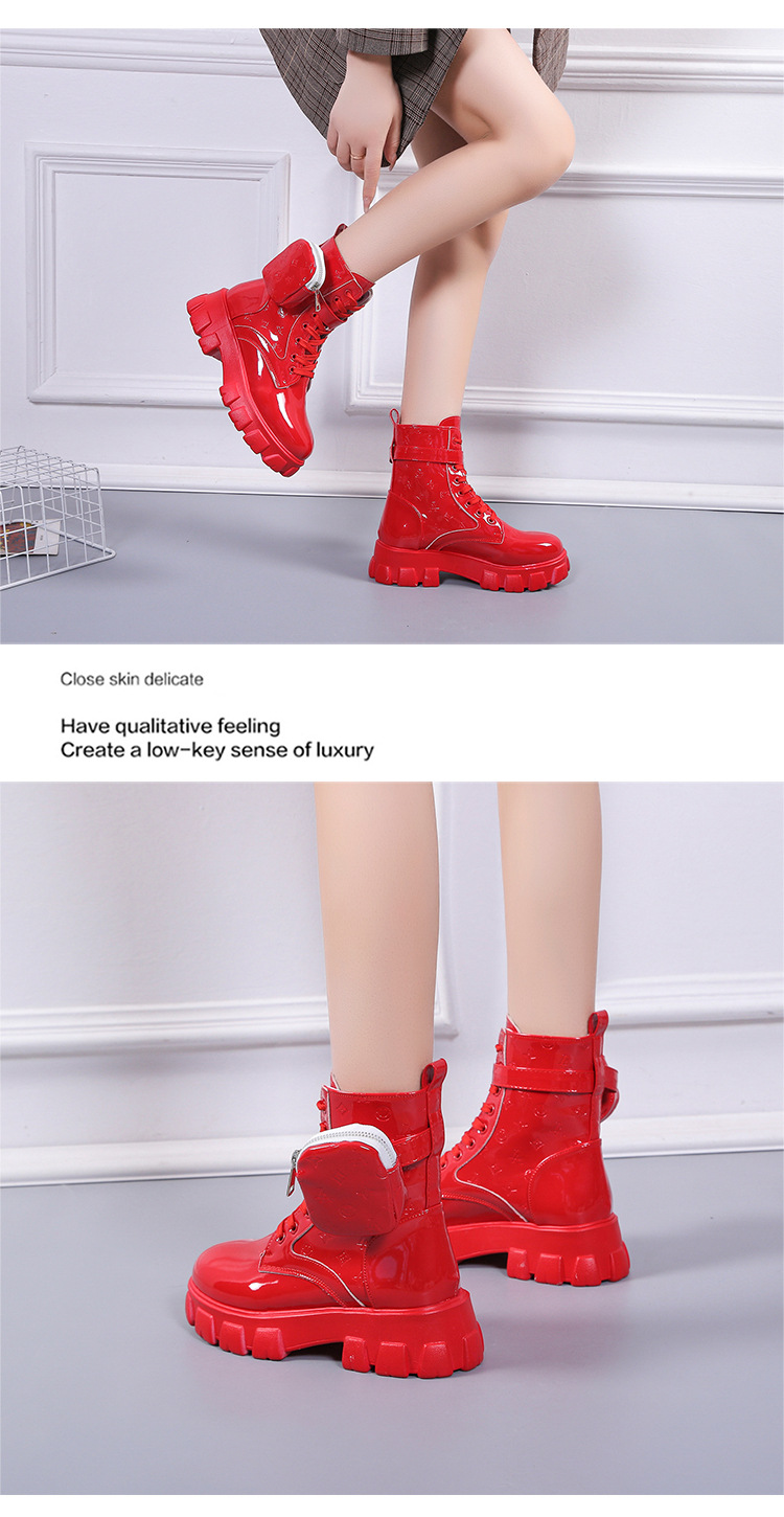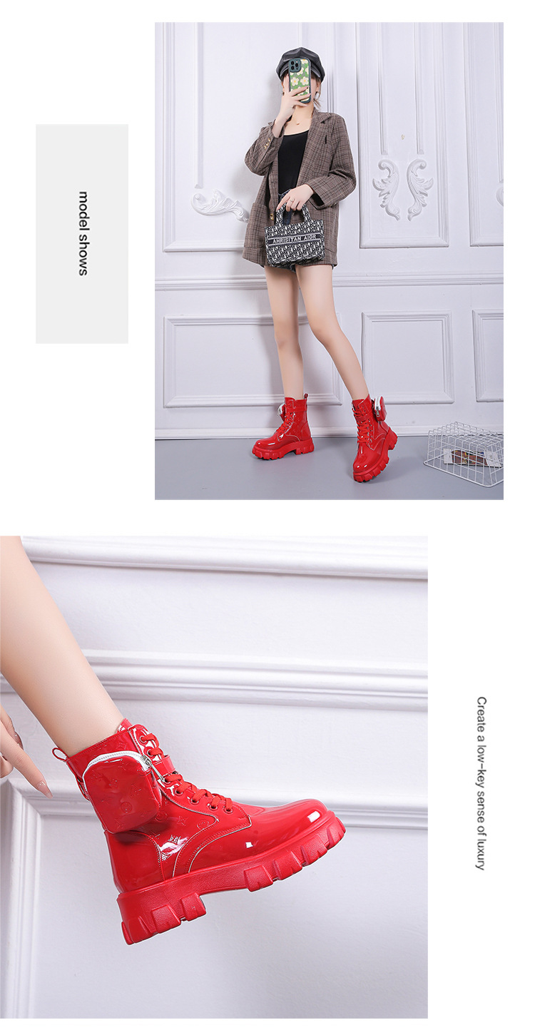 여성용 마틴 부츠 2023 여름 새로운 두꺼운 밑창 둥근 발가락 벨트 버클 작은 사첼 영국 스타일의 중간 송아지 부츠 플러스 사이즈 도매스토어 가기