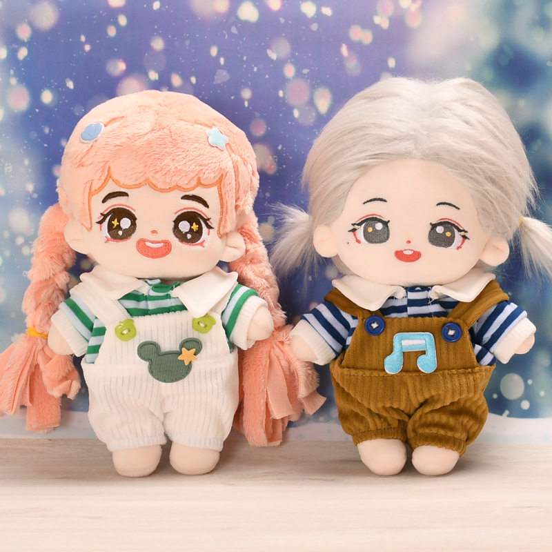 20cm 목화 인형 여름 티셔츠 + 멜빵 세트 변경 스타 인형 귀여운 수제 아기 옷스토어 가기